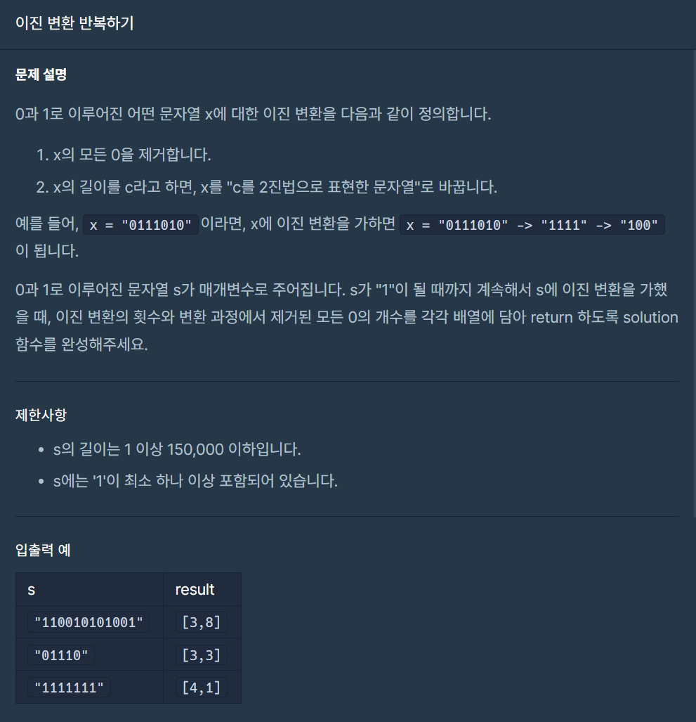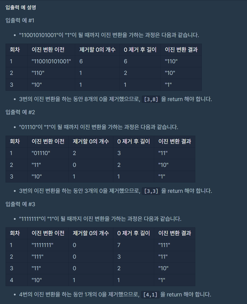 - 변환 과정에서 제거된 0의 개수도 더해준다. countZero += zero