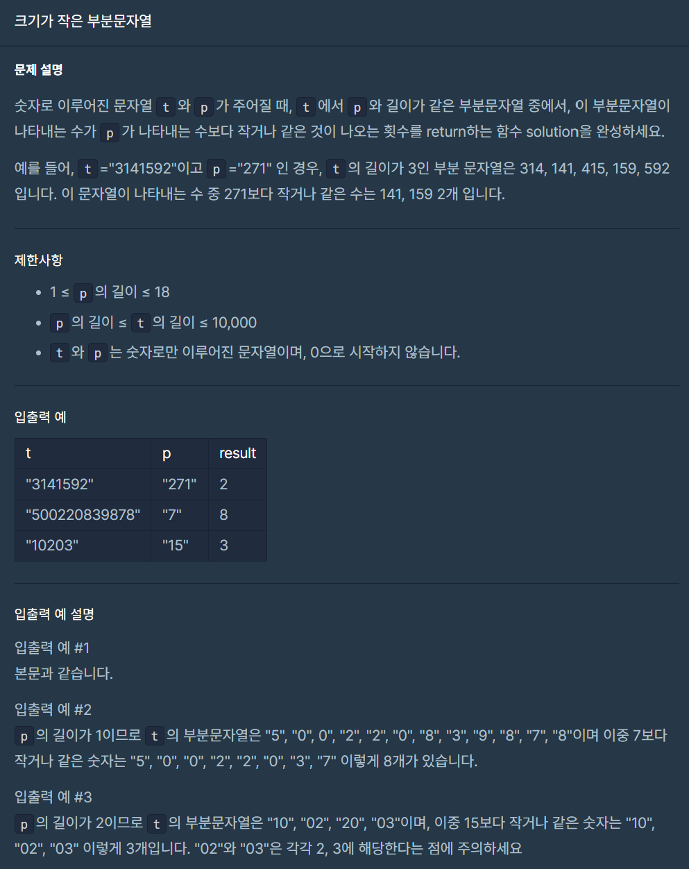 def solution(t, p):