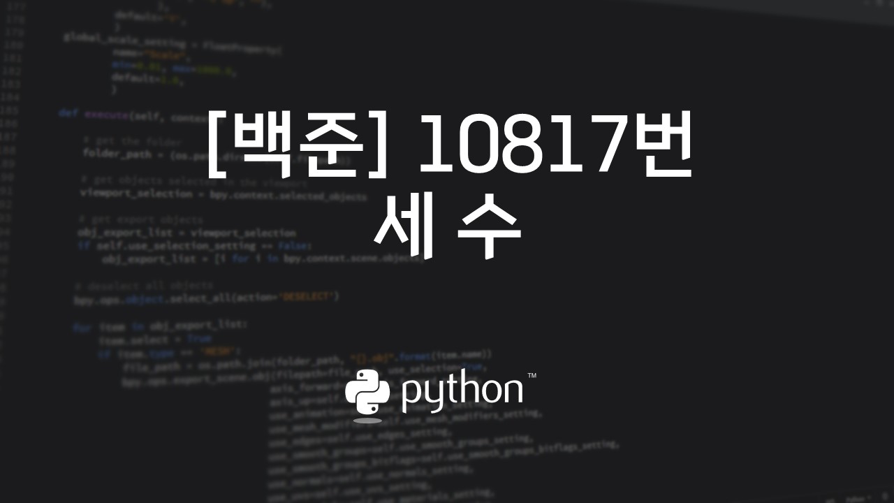 - 세 정수를 리스트로 입력받아 저장한다. li = list(map(int, sys.stdin.readline().split()))