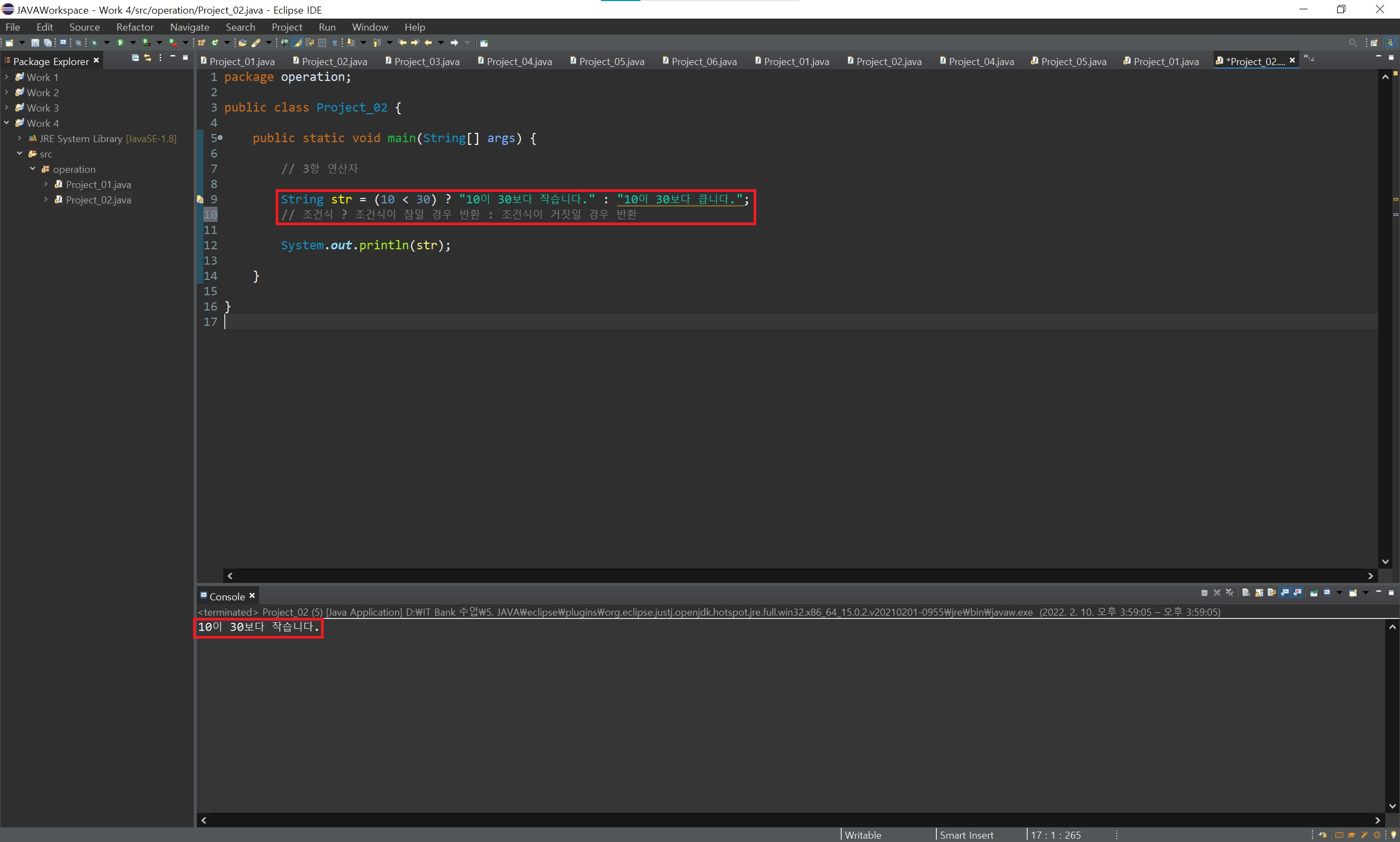 마지막으로 삼항 연산자는 피연산자 3개를 필요로 하는 연산자입니다.