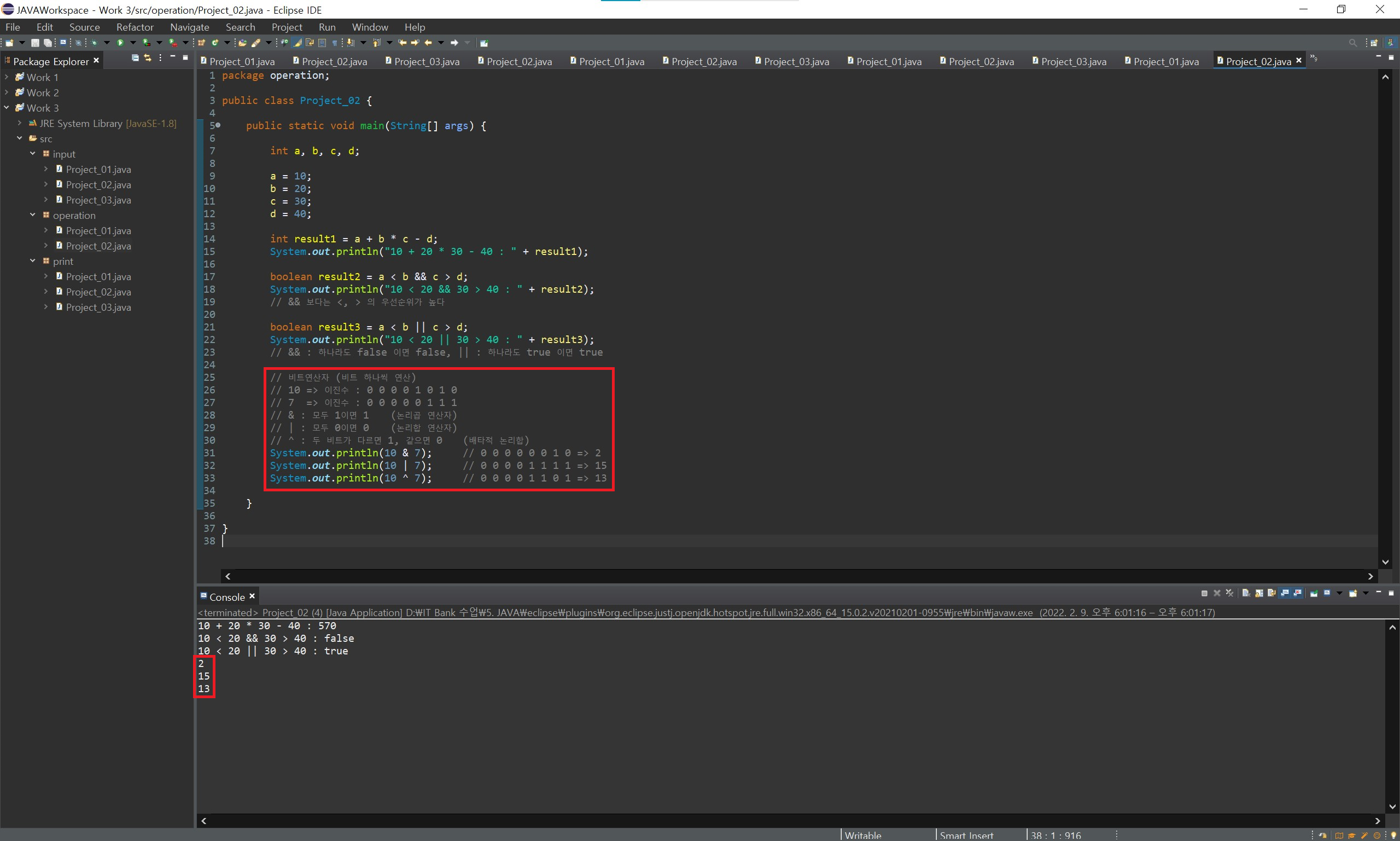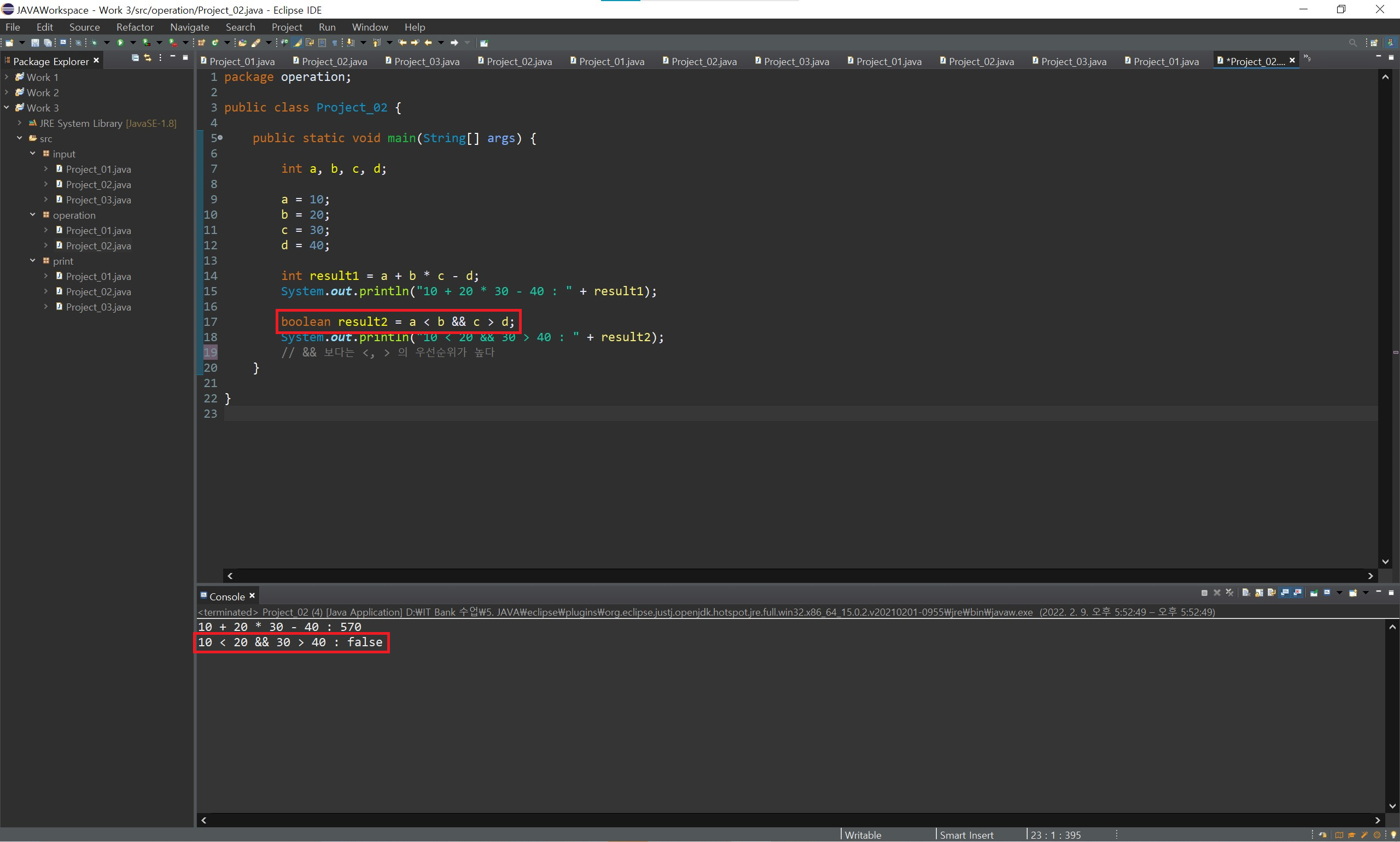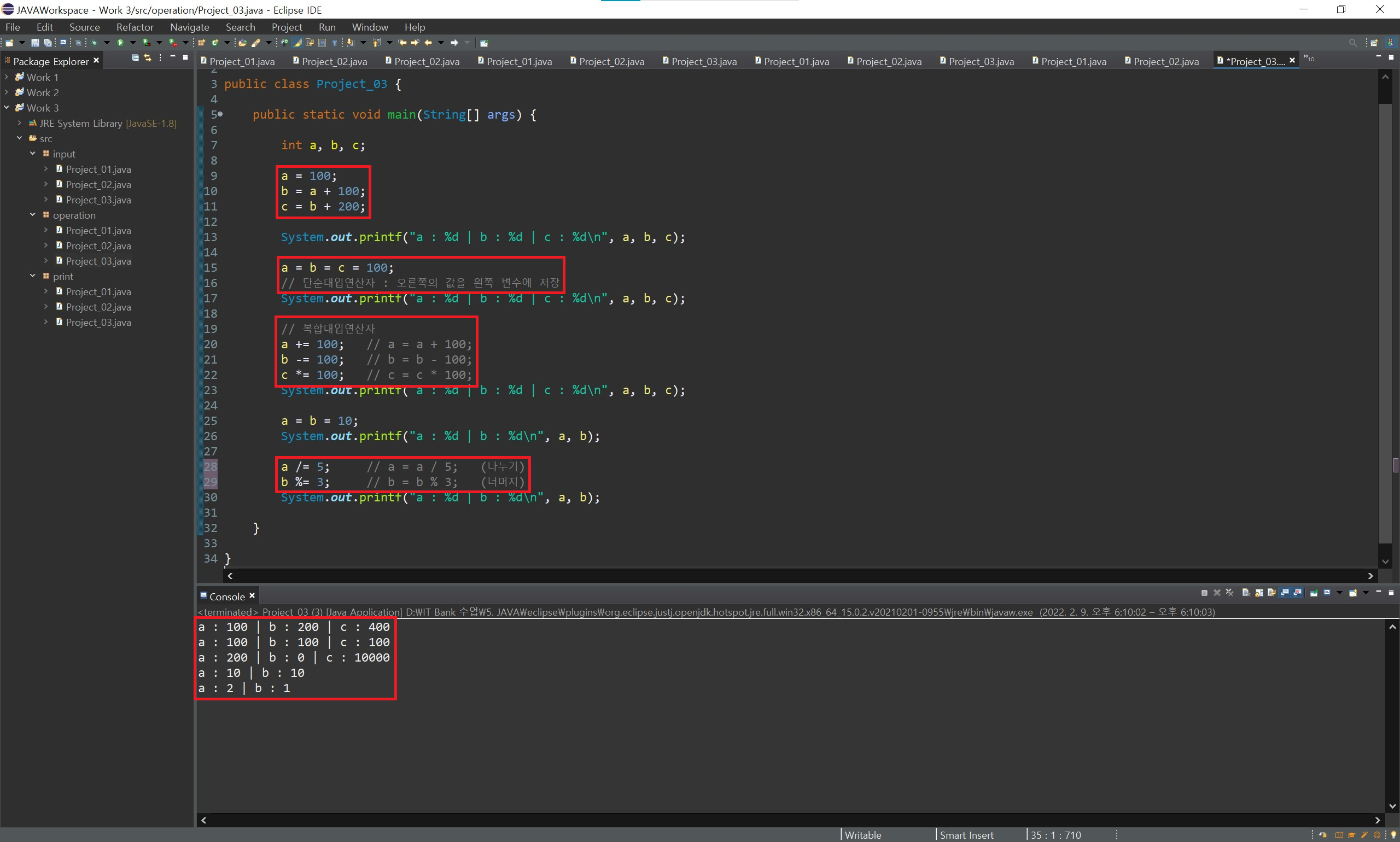 Java에서 연산자는 Python, C언어와 유사합니다.