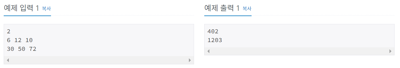 - 테스트 케이스의 개수를 입력받는다. T = int(sys.stdin.readline())