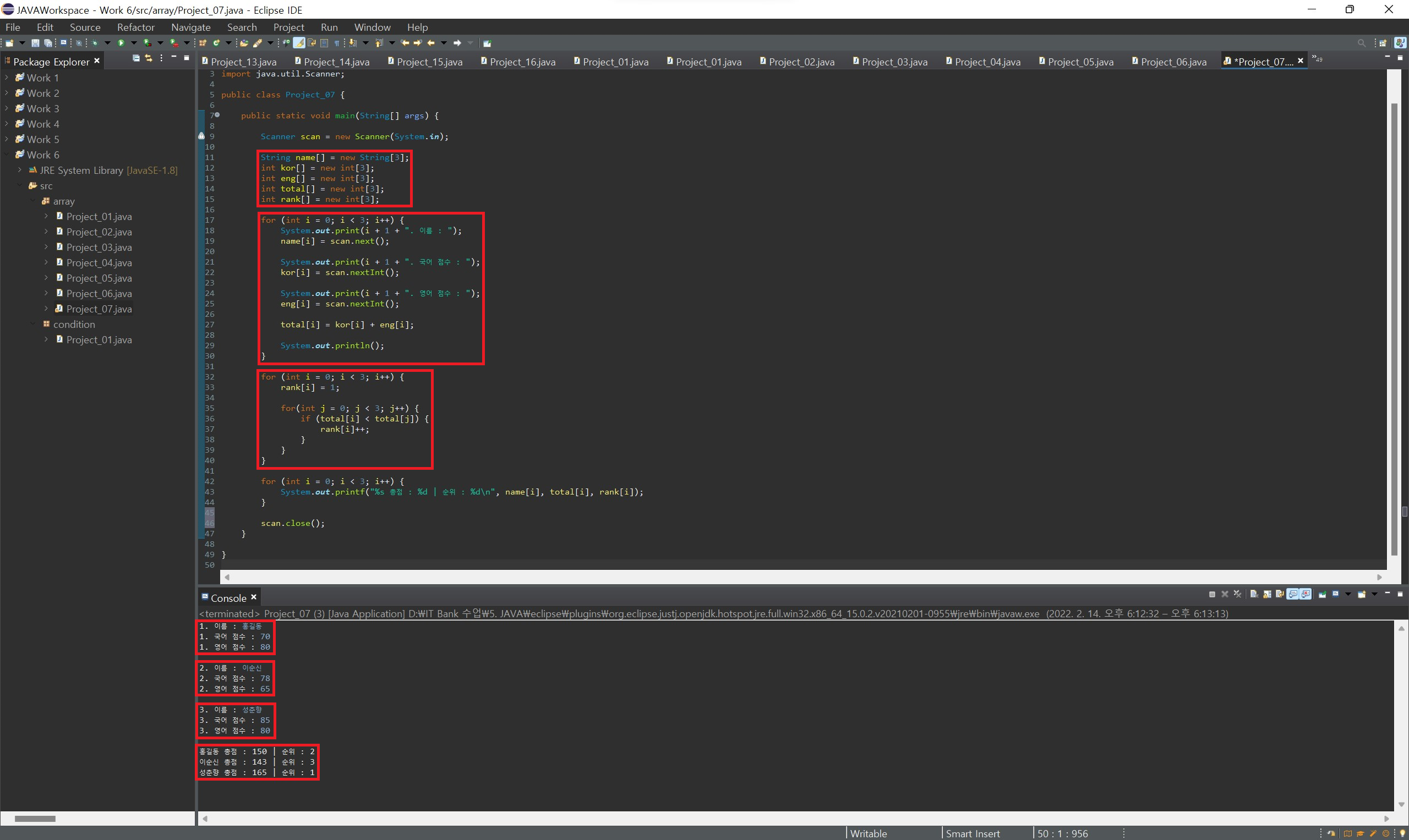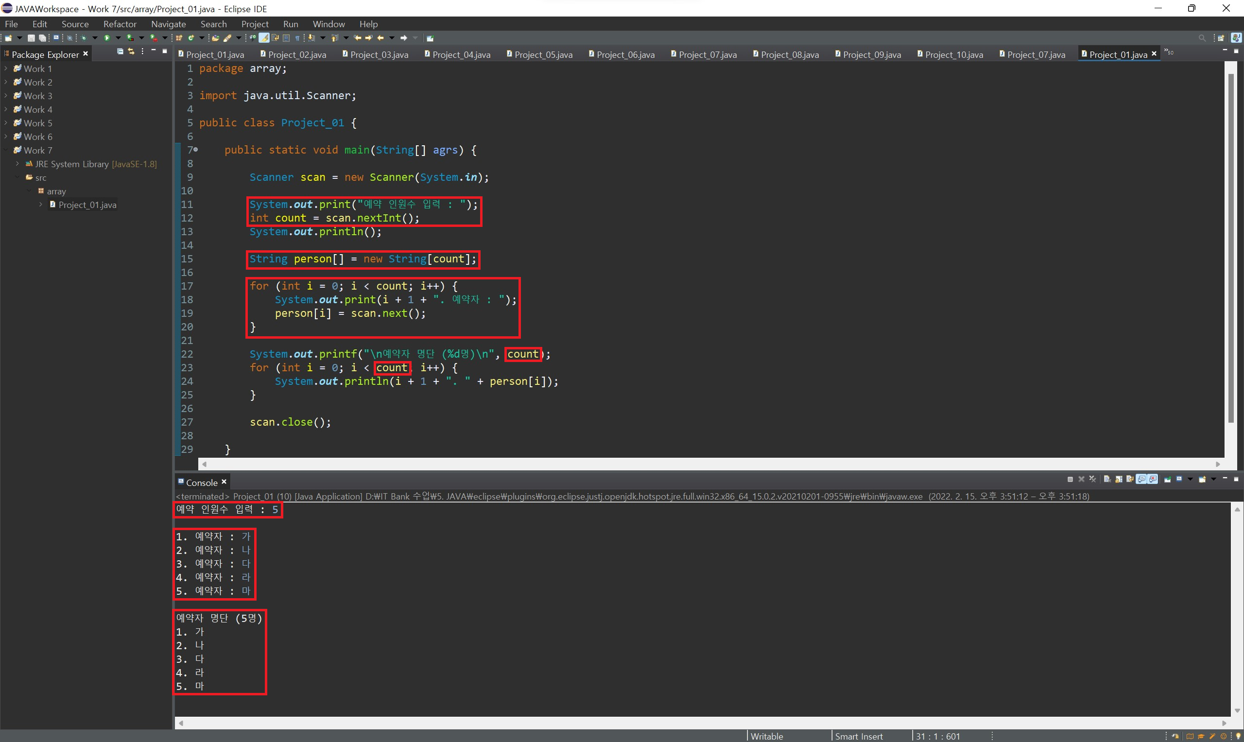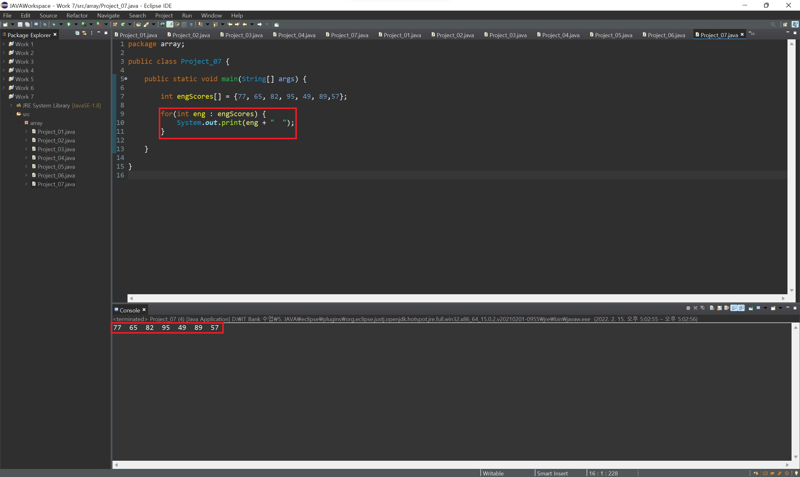 for(배열의 자료형 배열에서 꺼낸 항목을 저장할 변수 : 배열 변수명) 형식으로 작성하게 되면 배열의 항목 개수만큼 반복하여 각 배열의 항목을 0번부터 추출하게 됩니다.