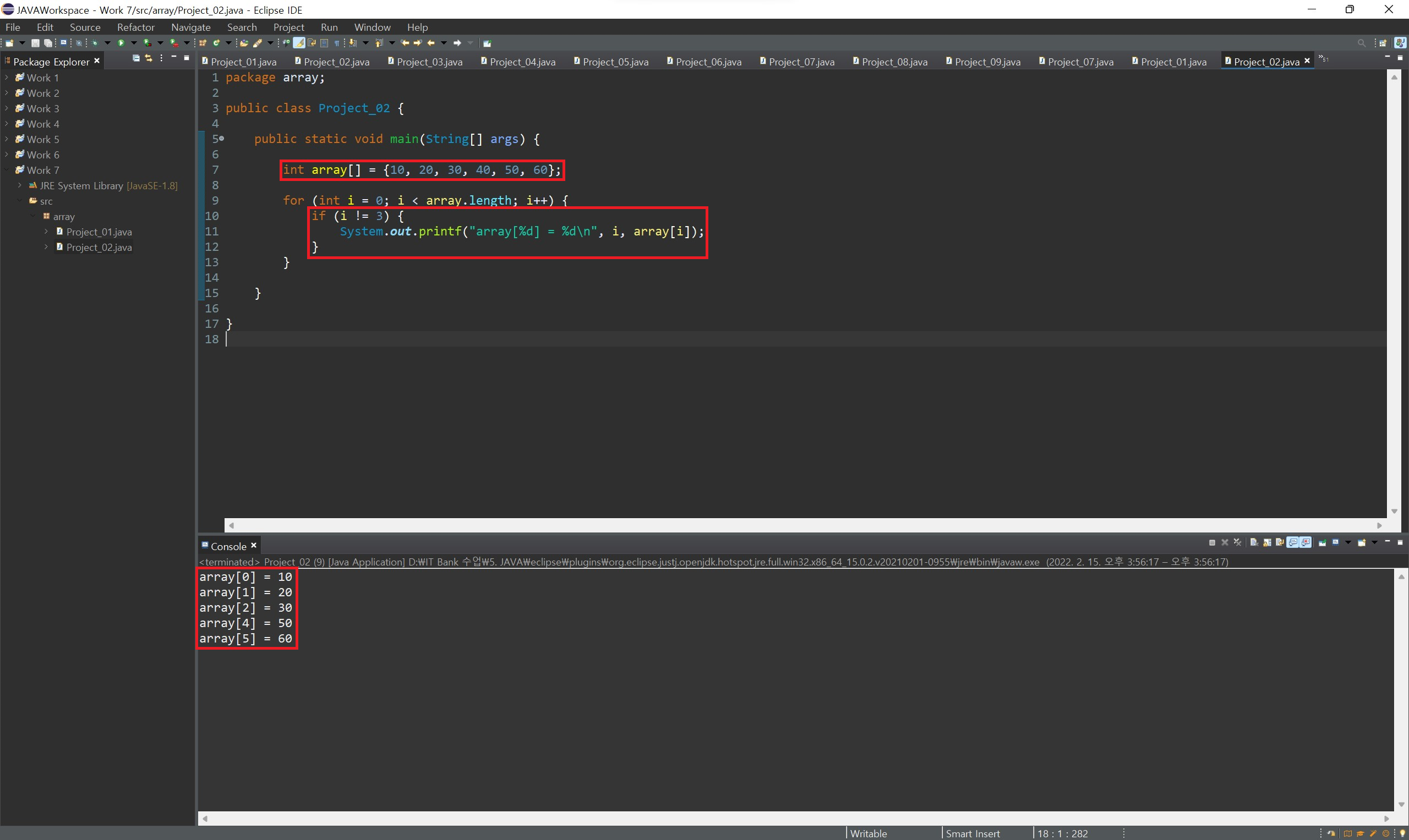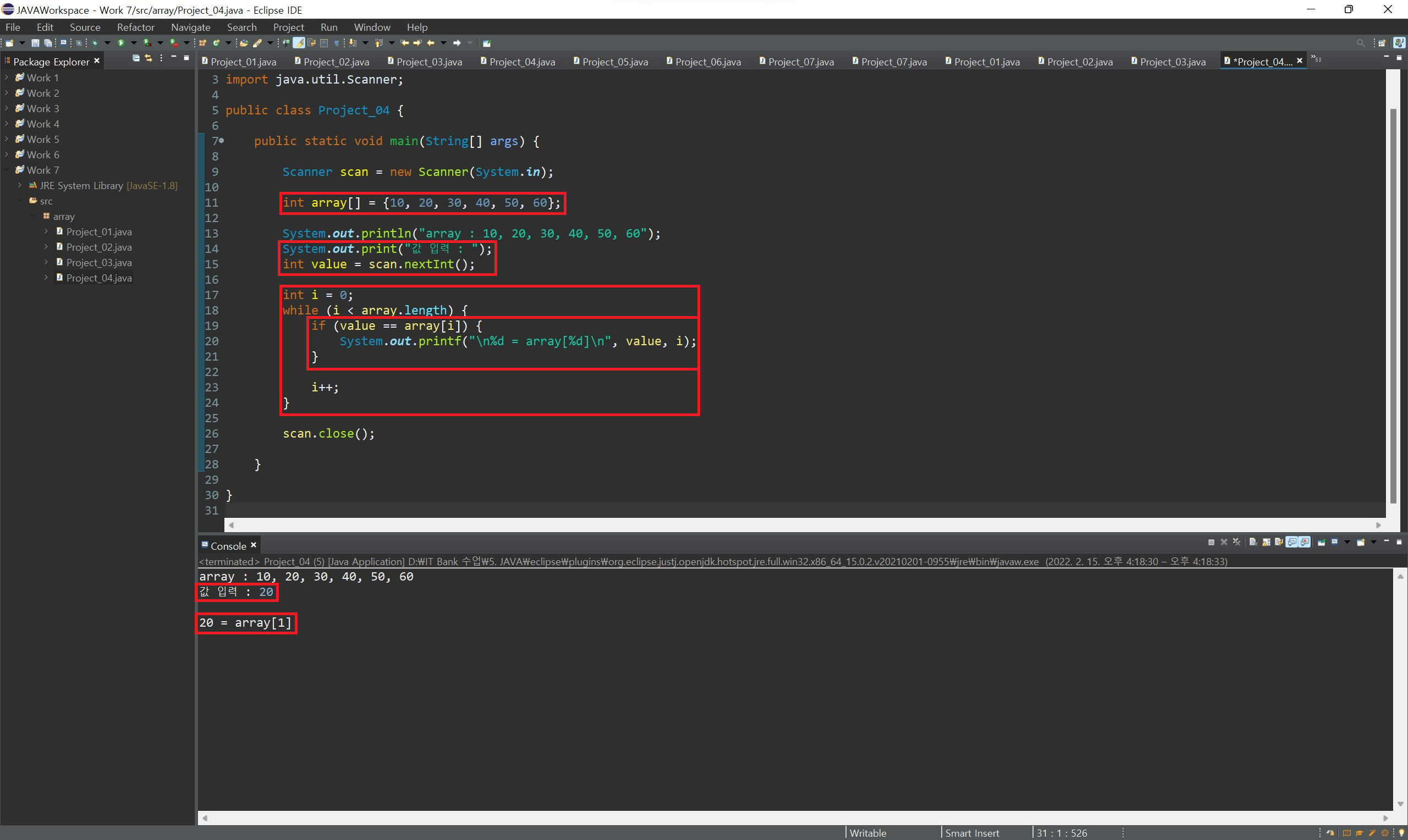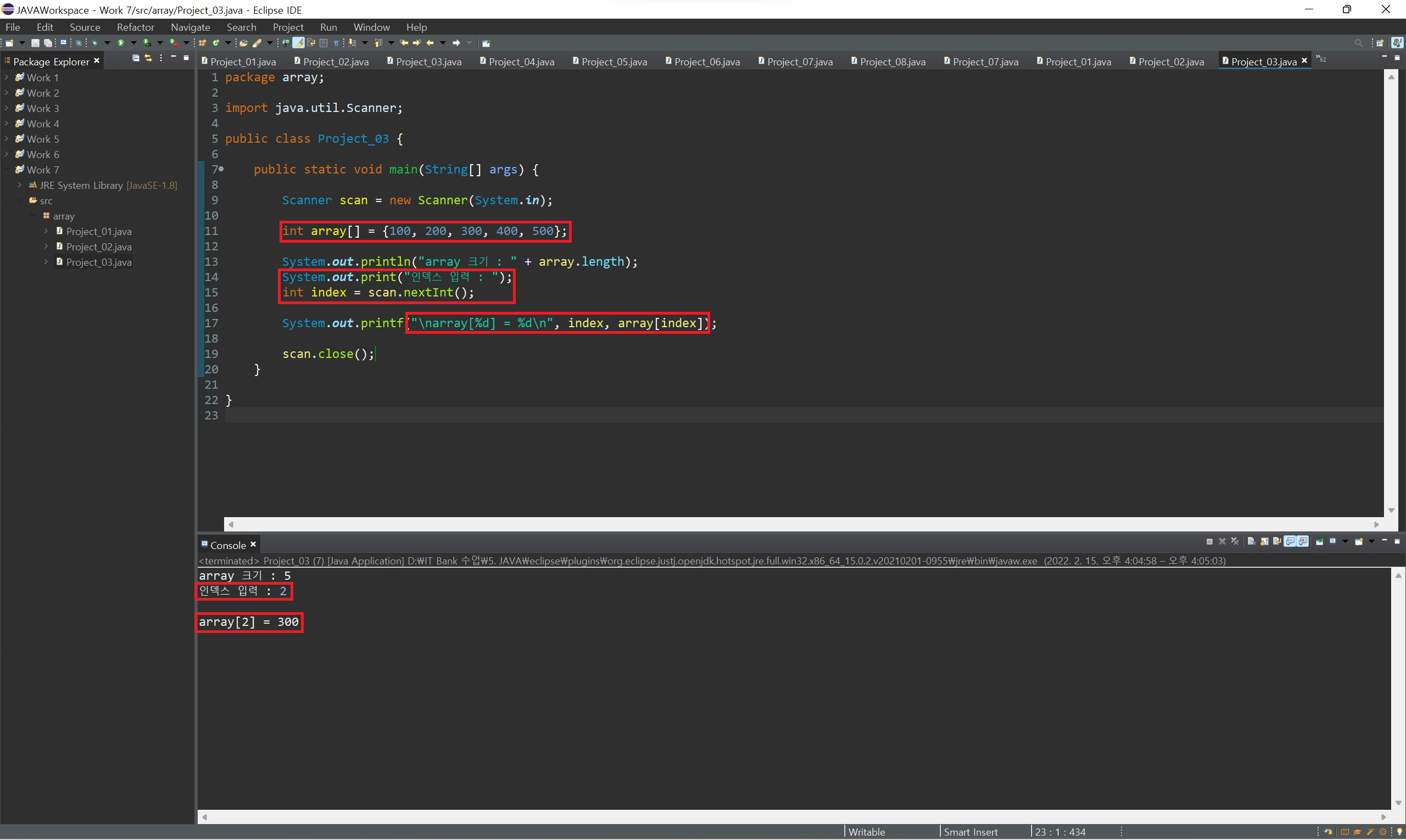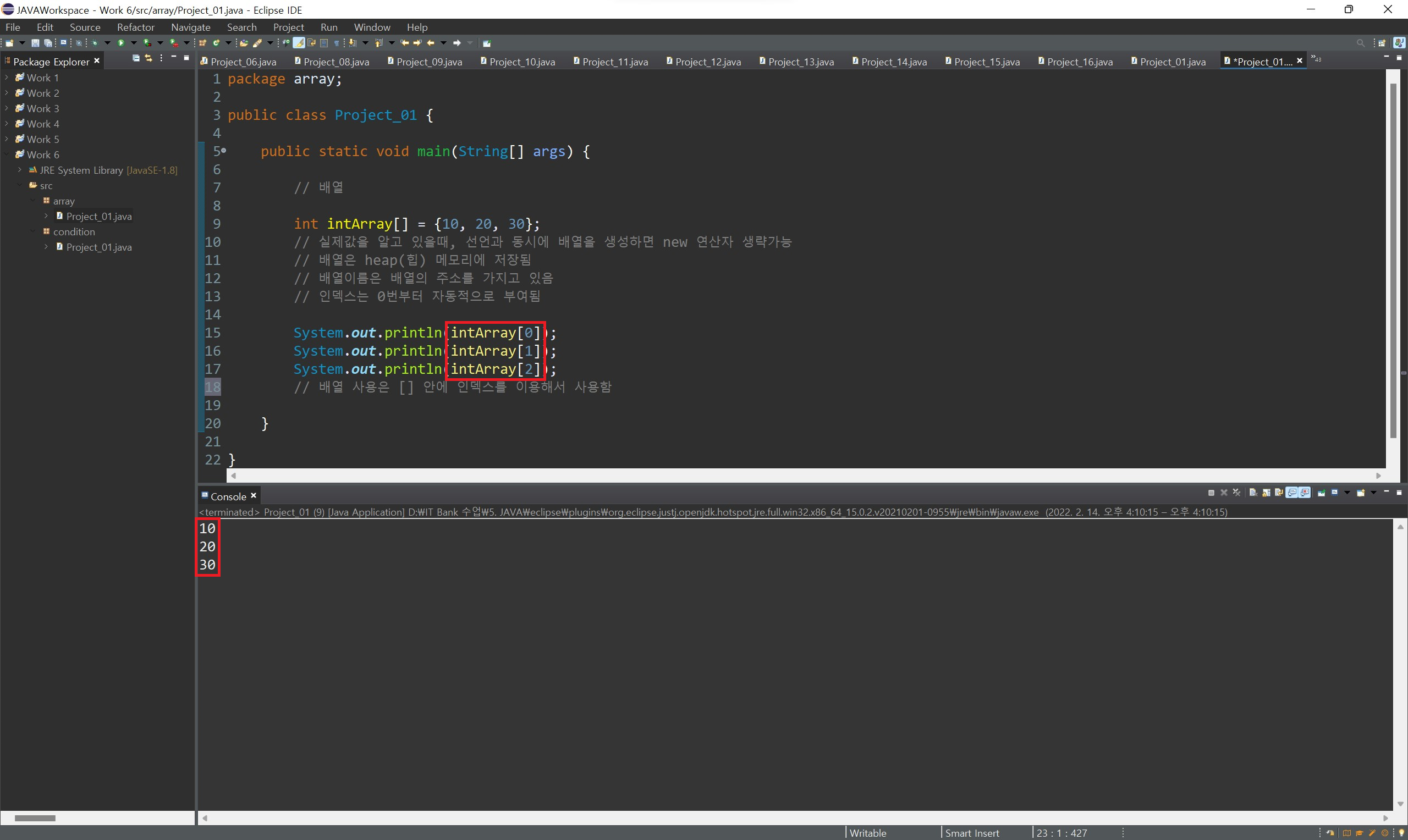 index 값을 활용하여 배열의 값들을 하나씩 출력하며 확인할 수 있습니다.
