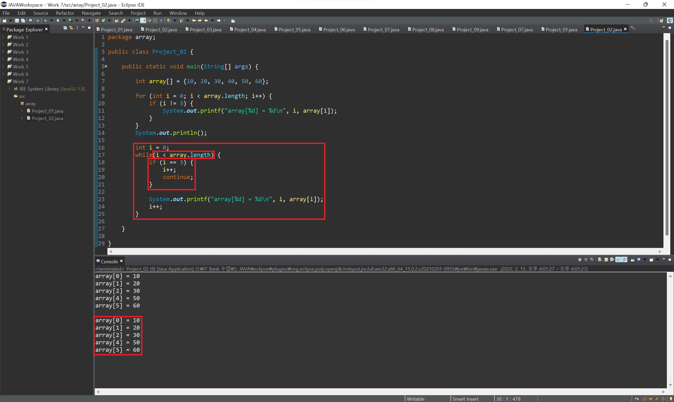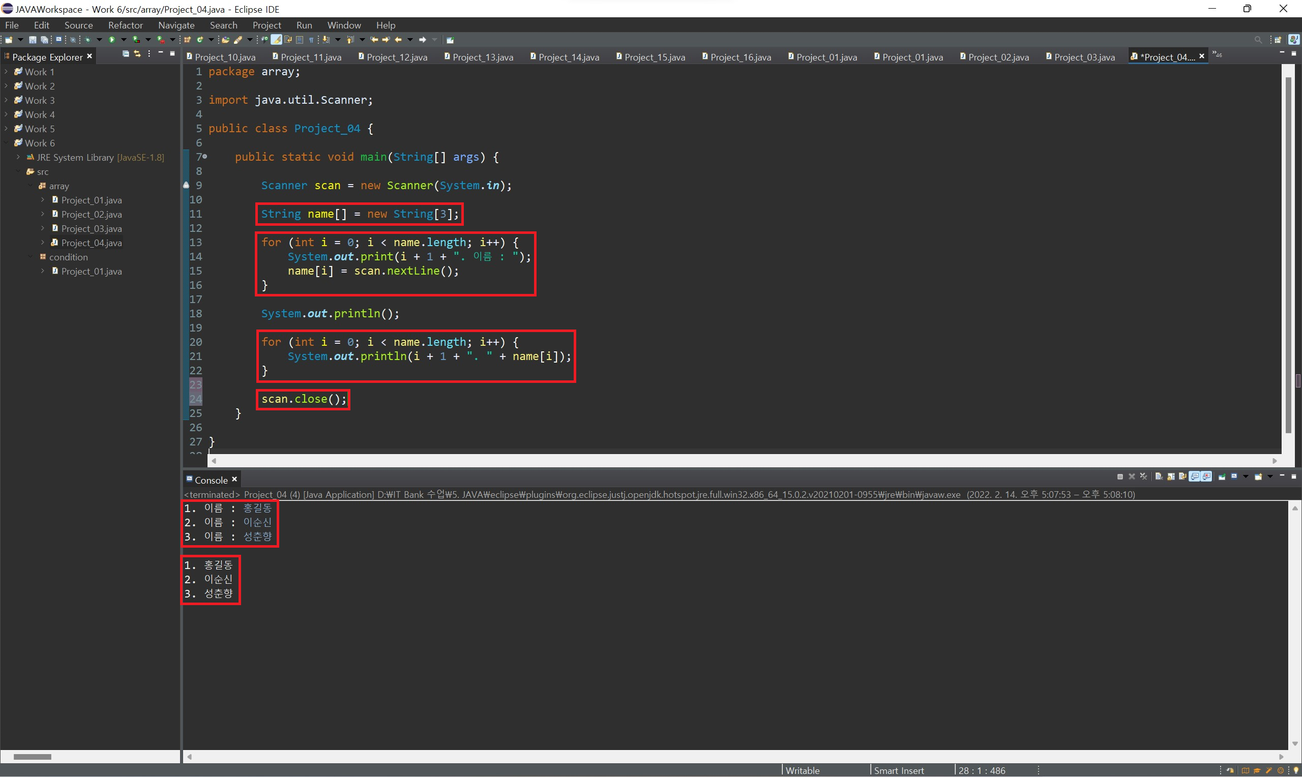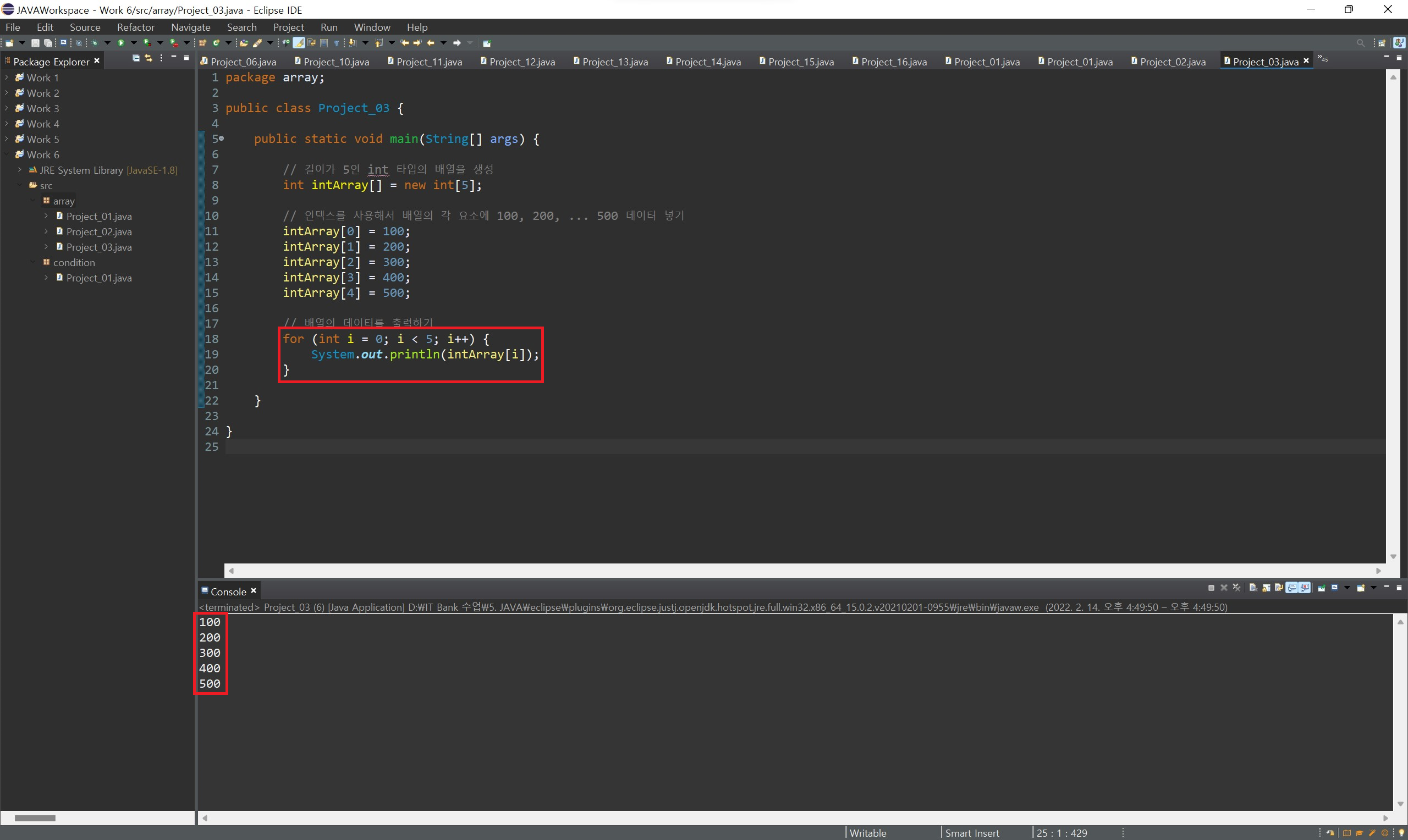 배열의 값을 확인할 때는 하나하나 출력해 보며 확인할 수도 있지만, 반복문을 사용하여 쉽게 확인할 수 있습니다.