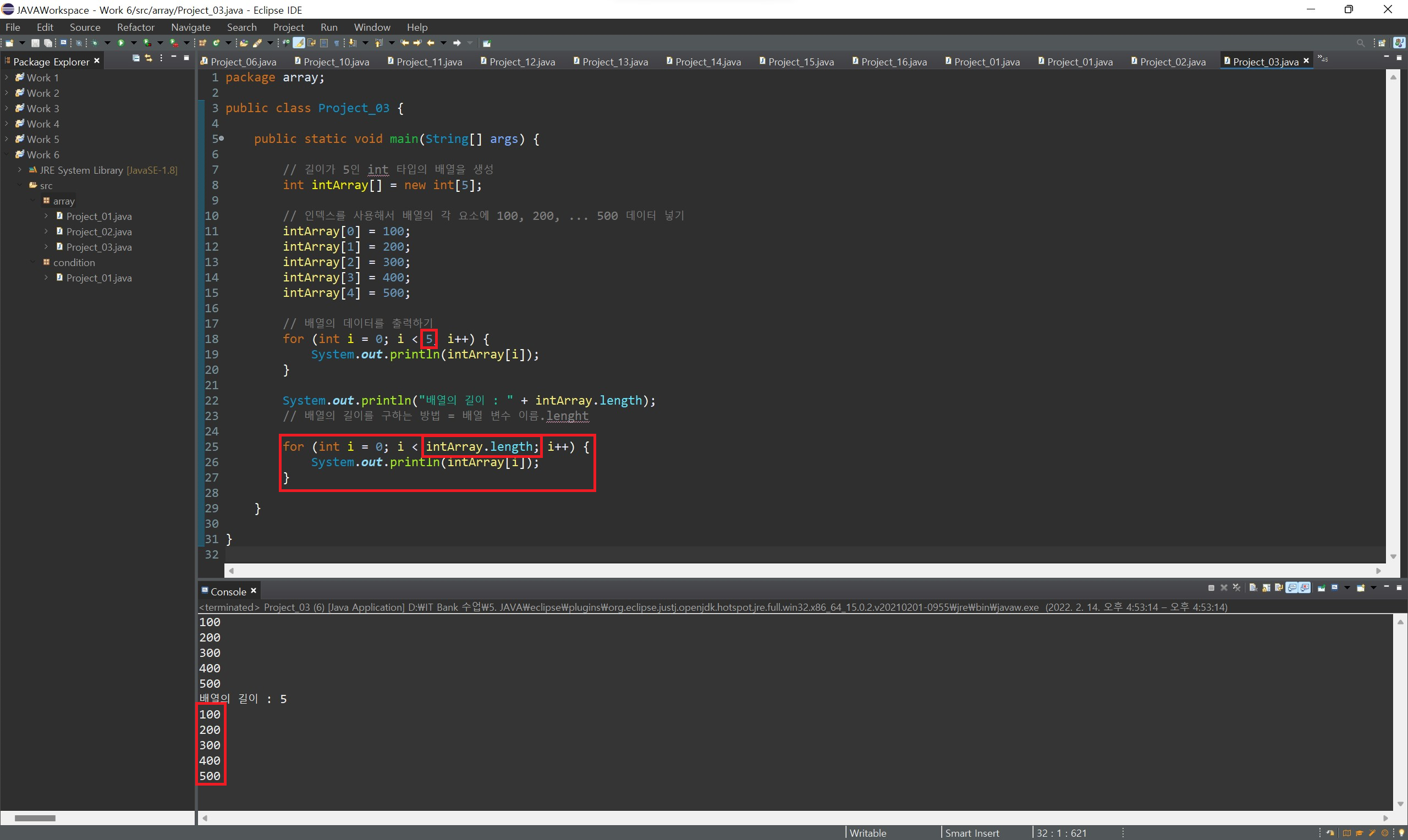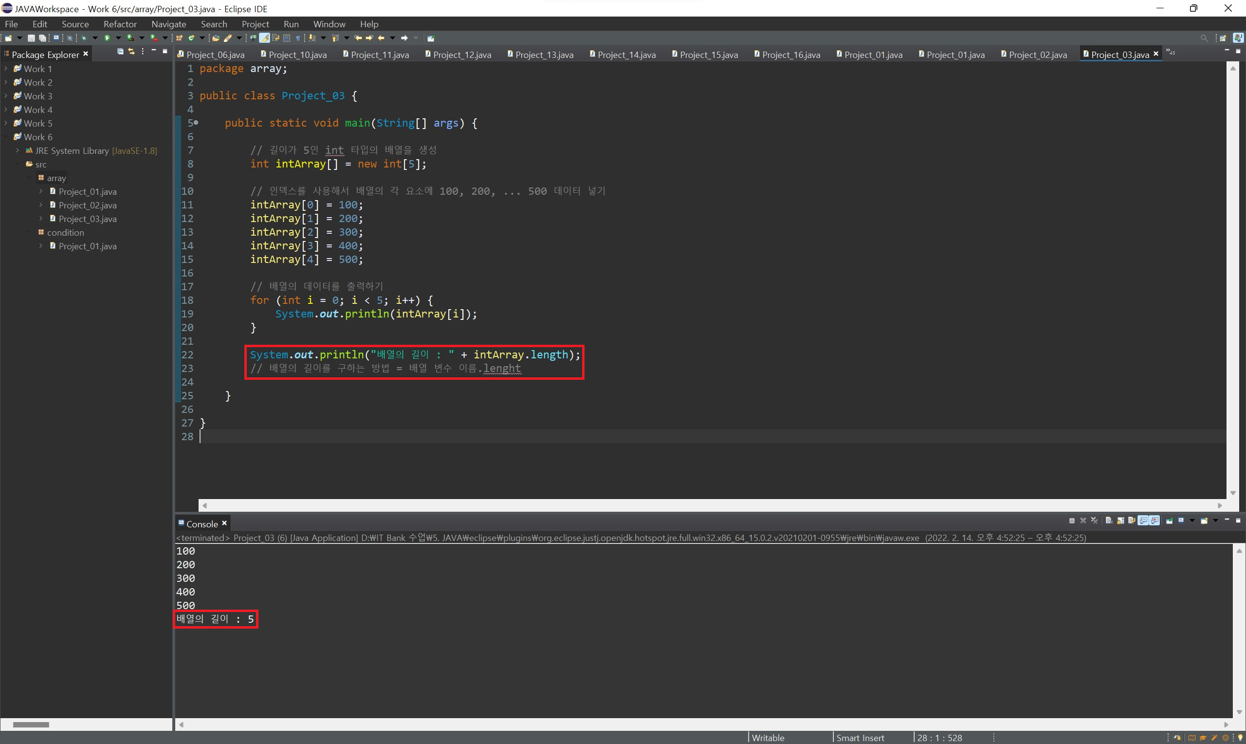 배열의 길이를 알 수 있는 방법은 배열 변수명.length 형식으로 작성하면 해당 배열의 길이를 반환해 줍니다.
