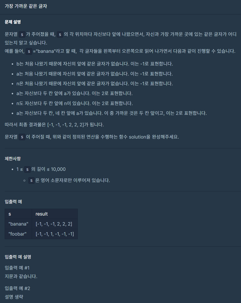 - 반면에 처음 나온 글자라면 -1을 추가한다. else: answer.append(-1)