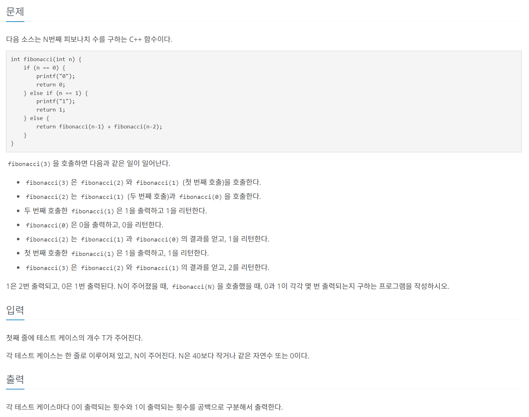 - 2부터 각 수의 0과 1이 출력되는 개수는 이전과 그 이전의 0과 1의 개수를 더한 결과이다.