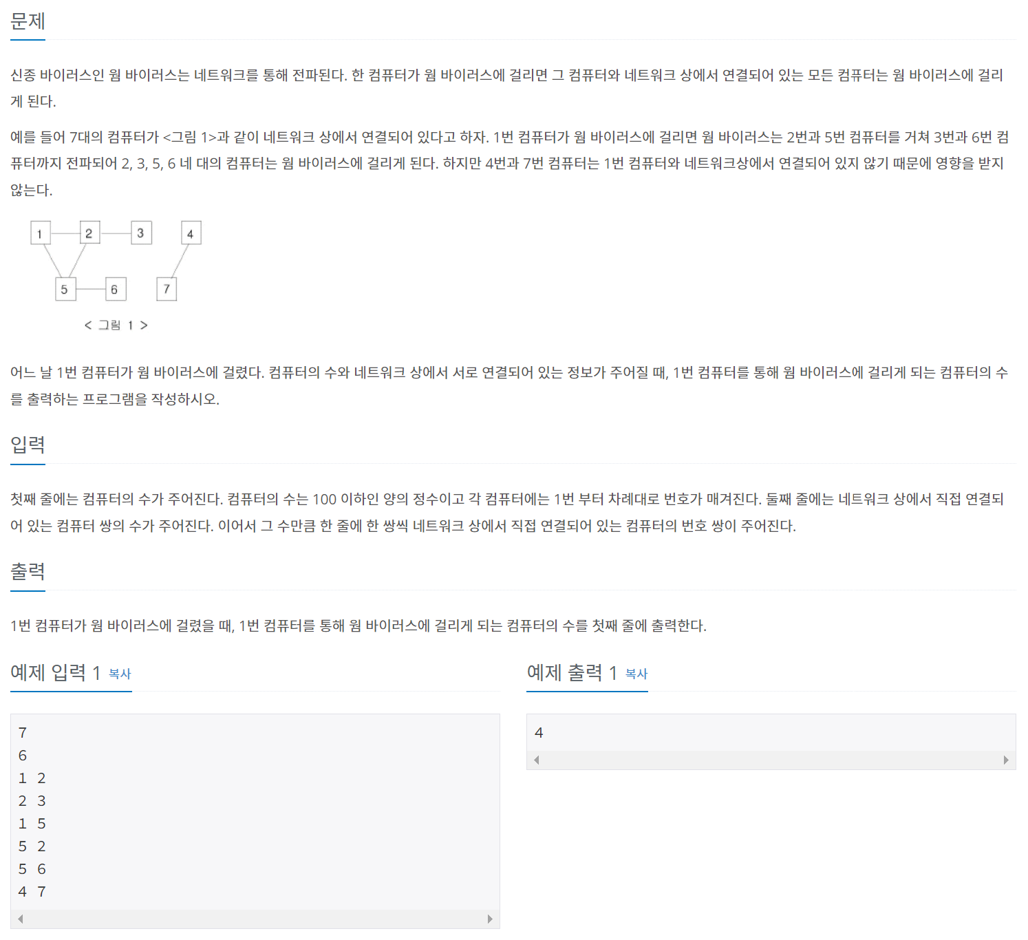 - 연결되어 있는 컴퓨터 쌍의 수를 입력받는다. M = int(sys.stdin.readline())
