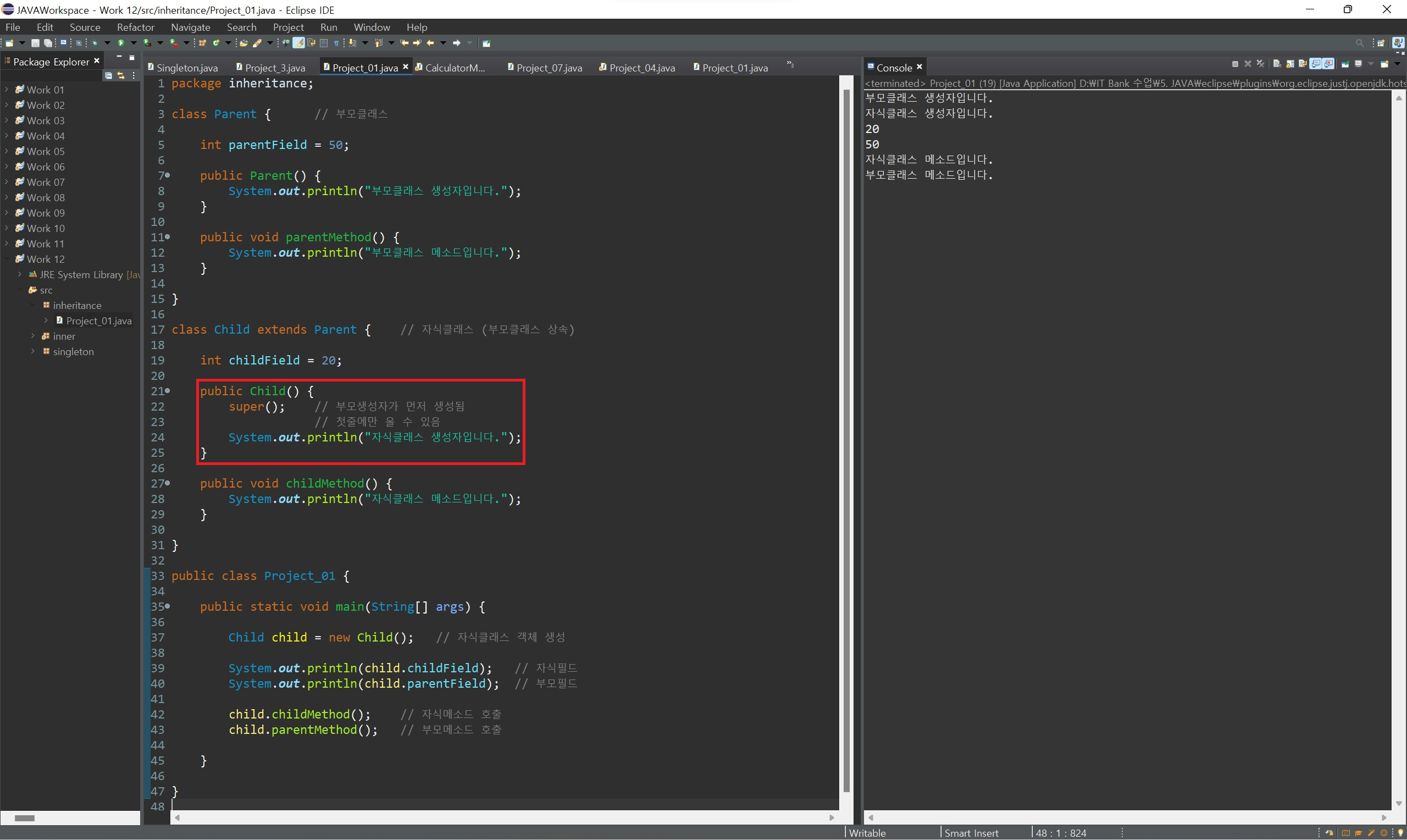 현실에서 부모 없는 자식이 있을 수 없듯, Java에서도 자식 객체를 생성하면, 부모 객체가 먼저 생성되고 그다음에 자식 객체가 생성됩니다.