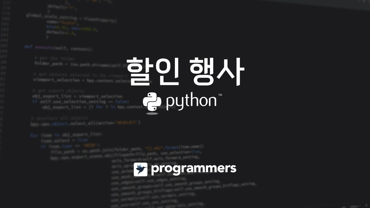 - 원하는 제품의 수량을 나타낸 배열의 원소 전체 합은 모두 10이므로 해당 날 할인하는 제품의 수가 10개 이상일 경우 반복문을 실행한다. while (len(discount) - i >= 10)