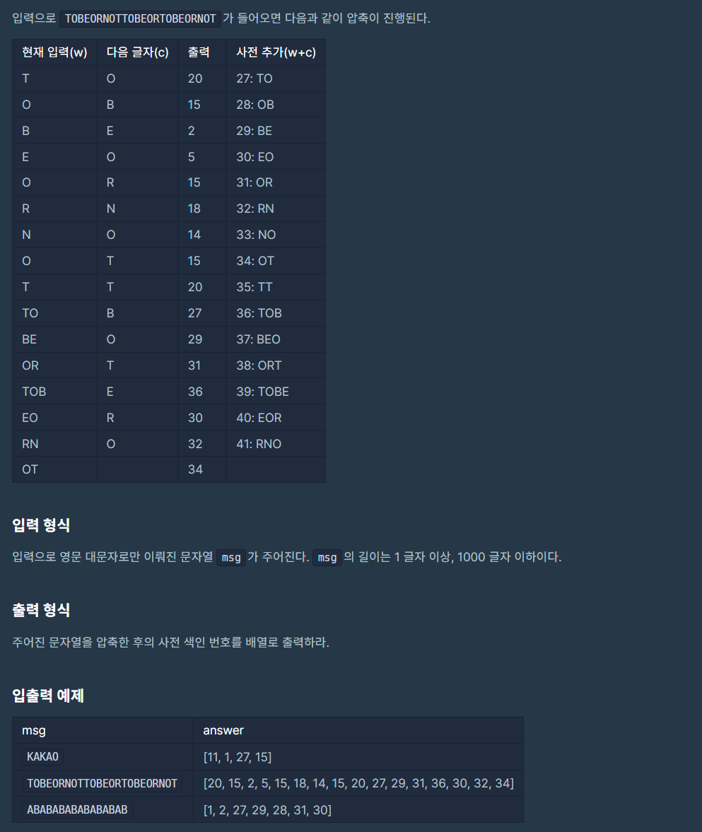 - 단어에서 문자열을 추출하고 해당 문자열이 사전에 있을 때 while (msg[now : next + cnt] in d)