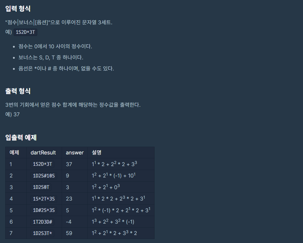 - 다트 점수 문자열을 하나씩 추출한다. for i in dartResult
