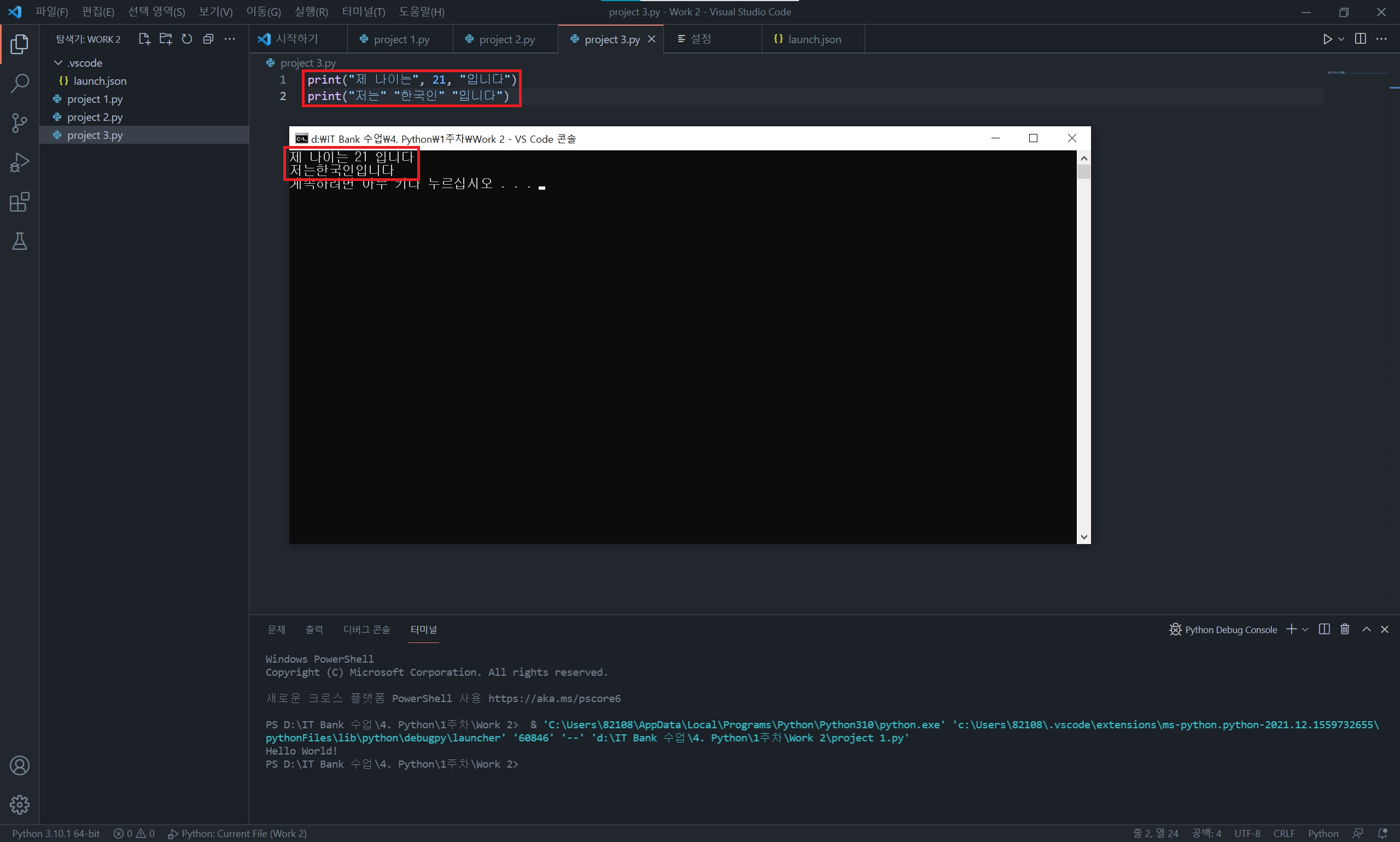파이썬에서 출력하는 방법은 print() 함수를 사용하는 방법입니다.