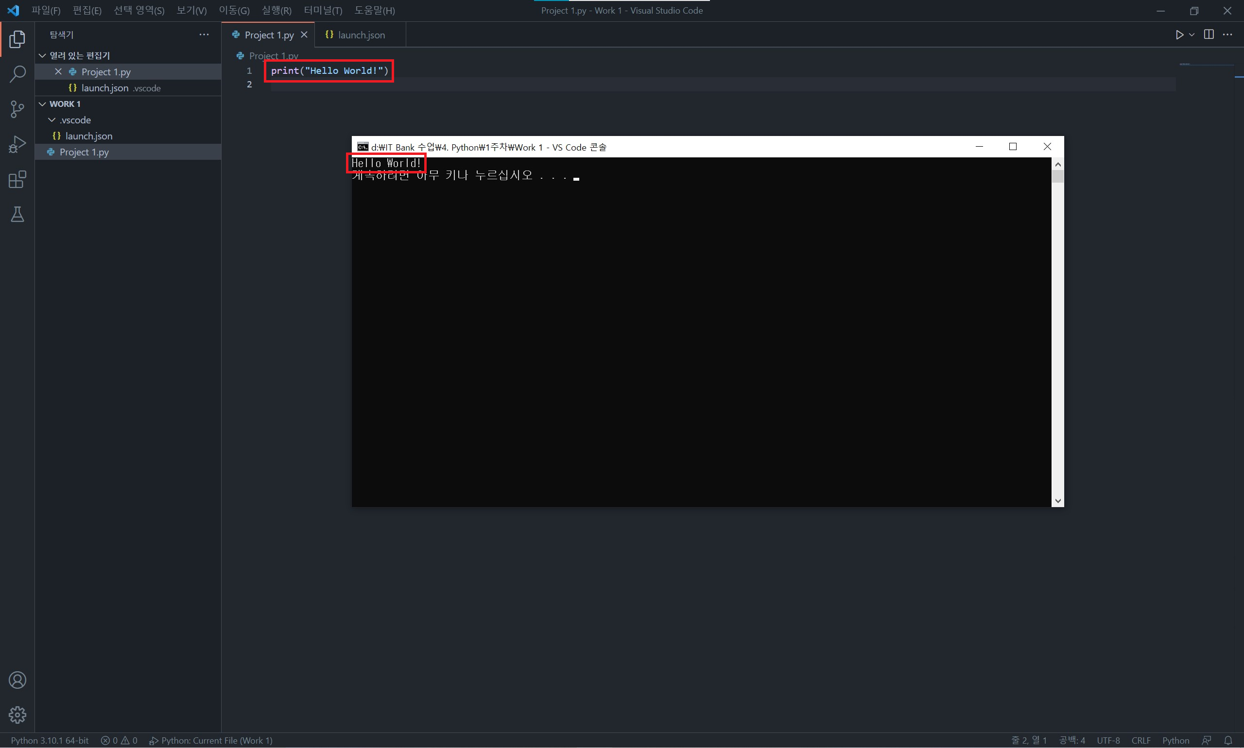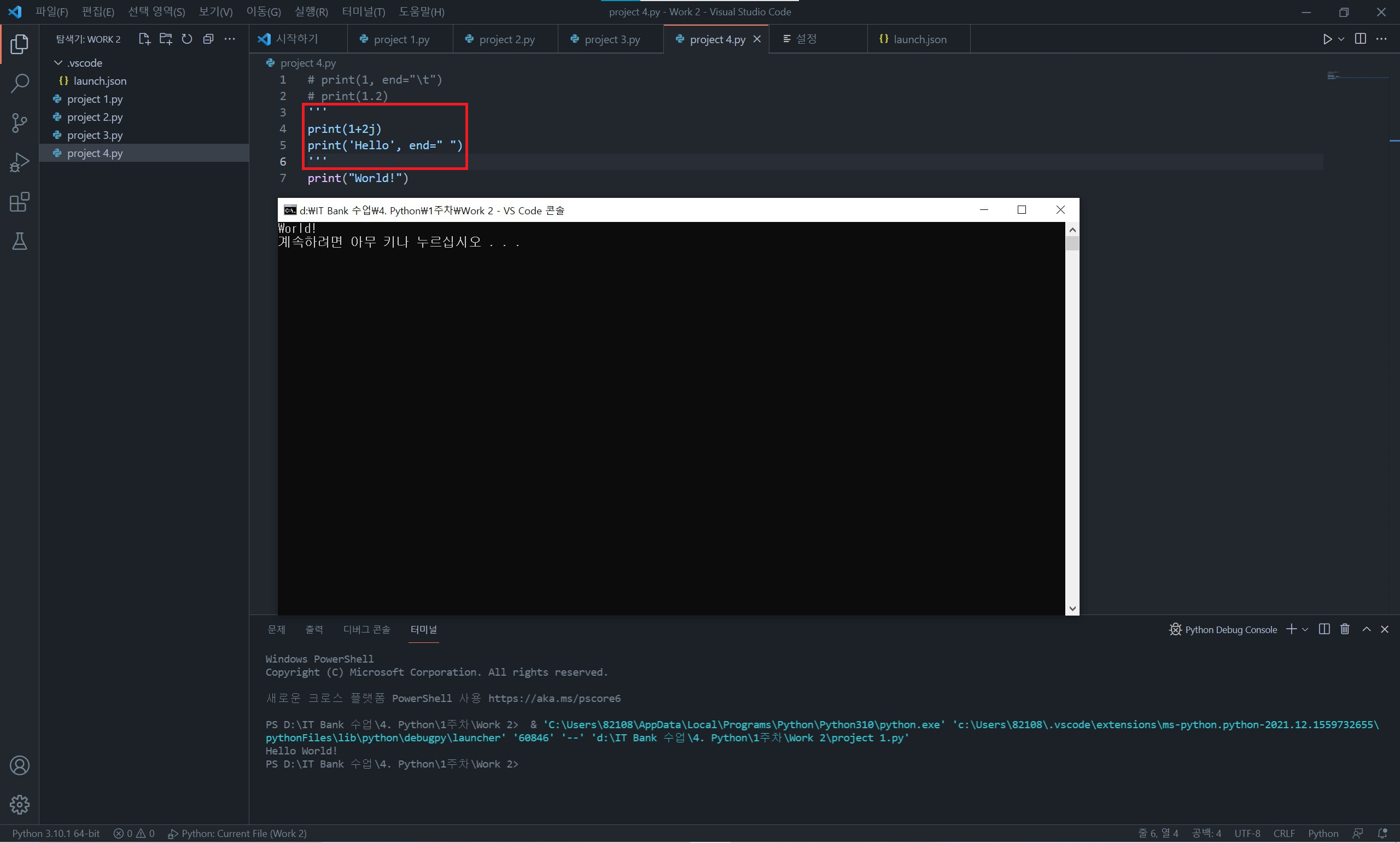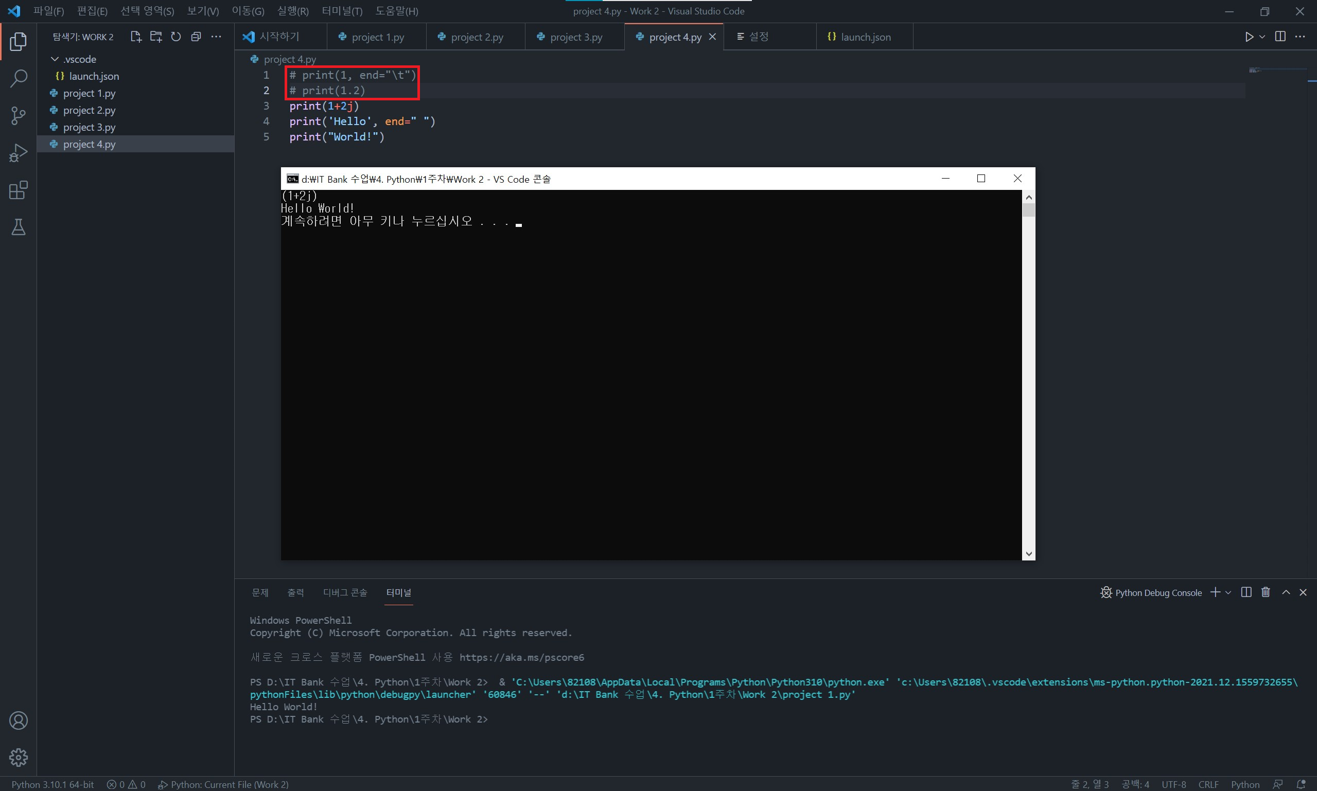 추가로 파이썬에서는 #을 사용하여 한 줄 주석 처리를 합니다. 단축키로는 ctrl + / = # (주석 처리)