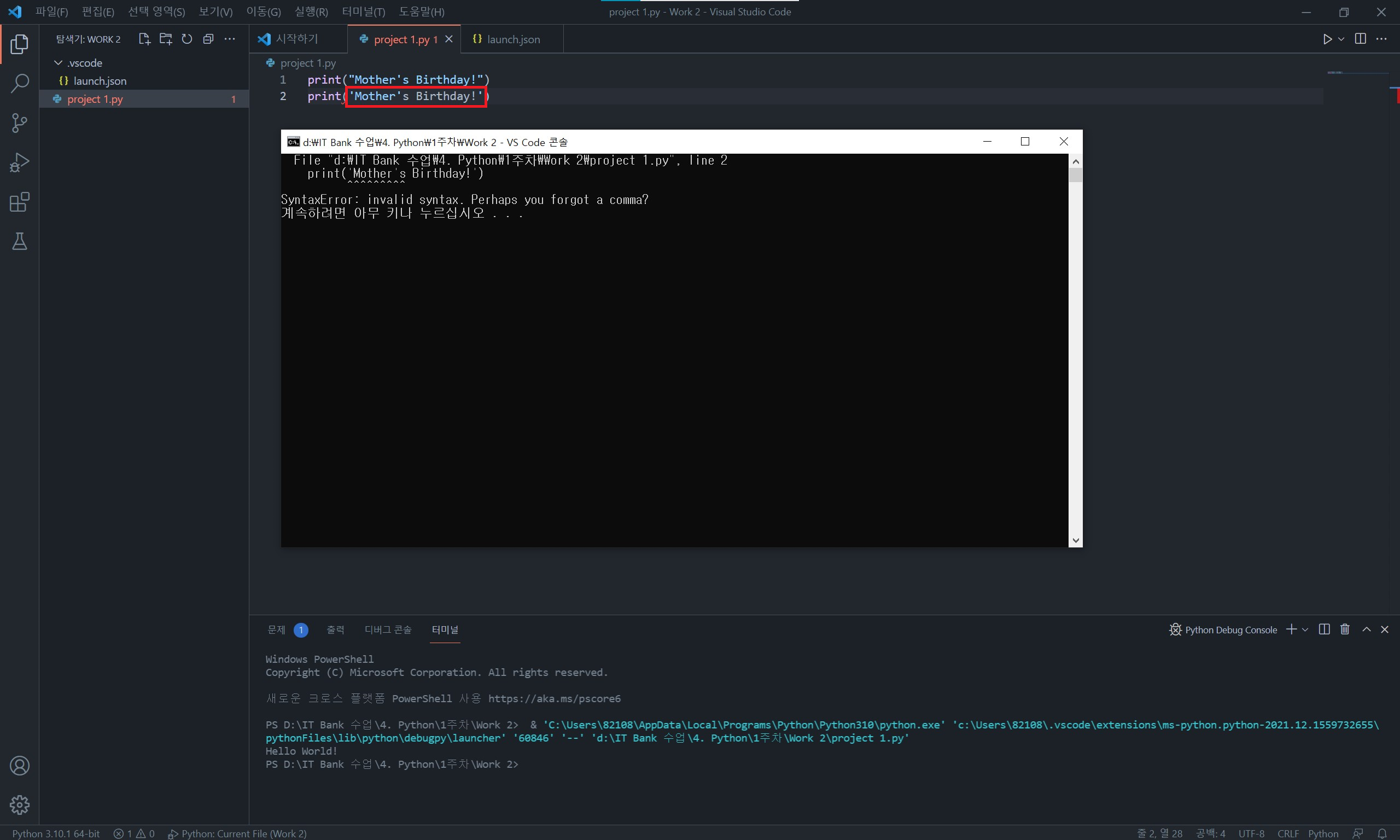 | [파이썬(Python) 공부하기] 1. 프로그램 설치 및 실행 - 우당탕탕 개발자 되기 프로젝트 (0) | 2023.06.28 |