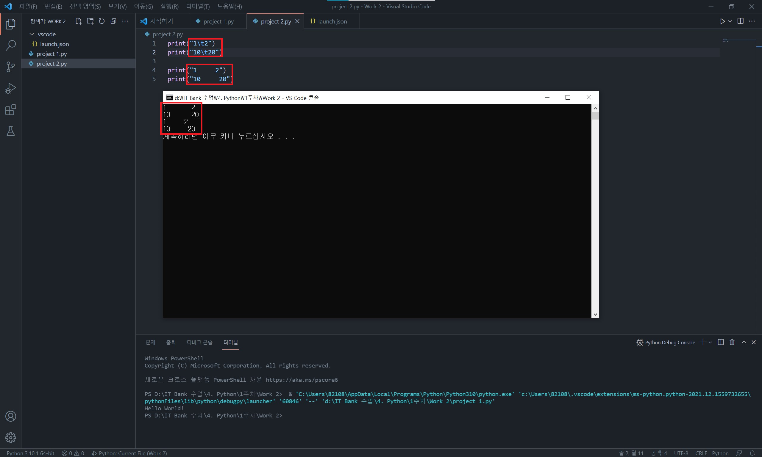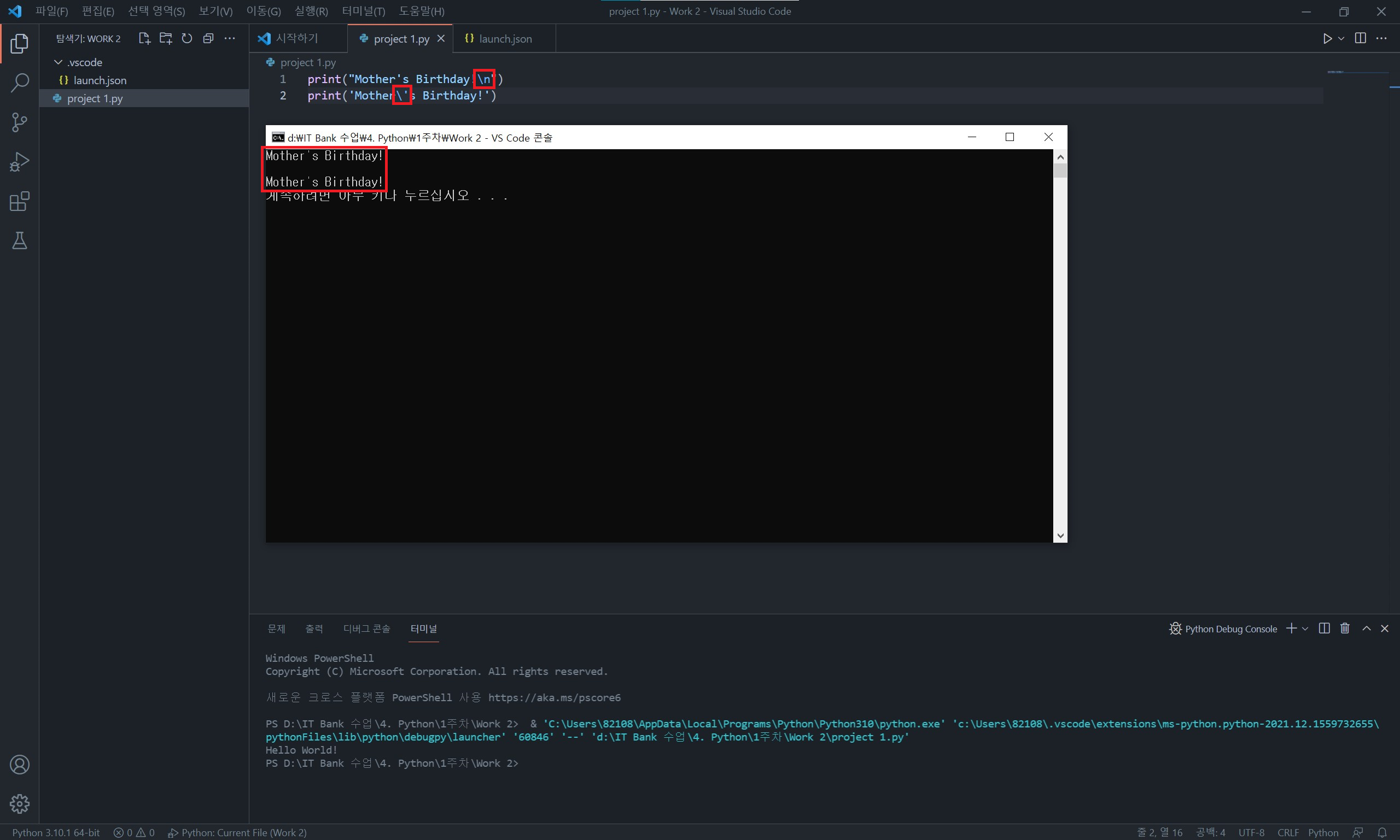 이스케이프 문자에는 여러 가지가 있지만 \t(탭)과 \n(줄바꿈)은 자주 사용하니 기억해 주세요!