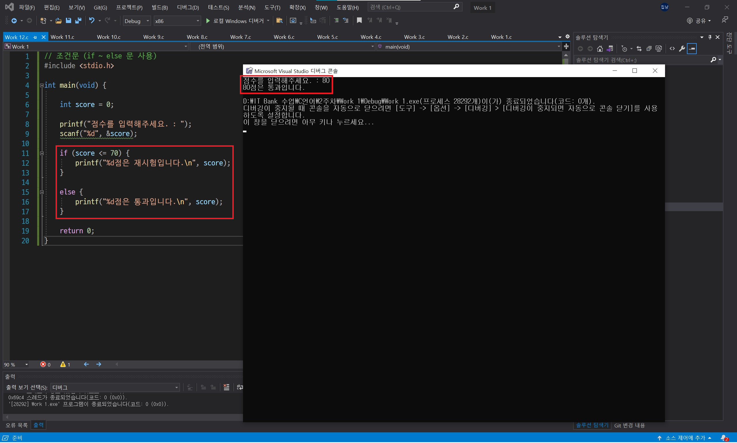 조건이 참일 때 수행할 문장이 한 문장이면 { }가 필요 없지만 여러 문장일 경우 꼭 { }를 활용하여 묶어줘야 합니다.