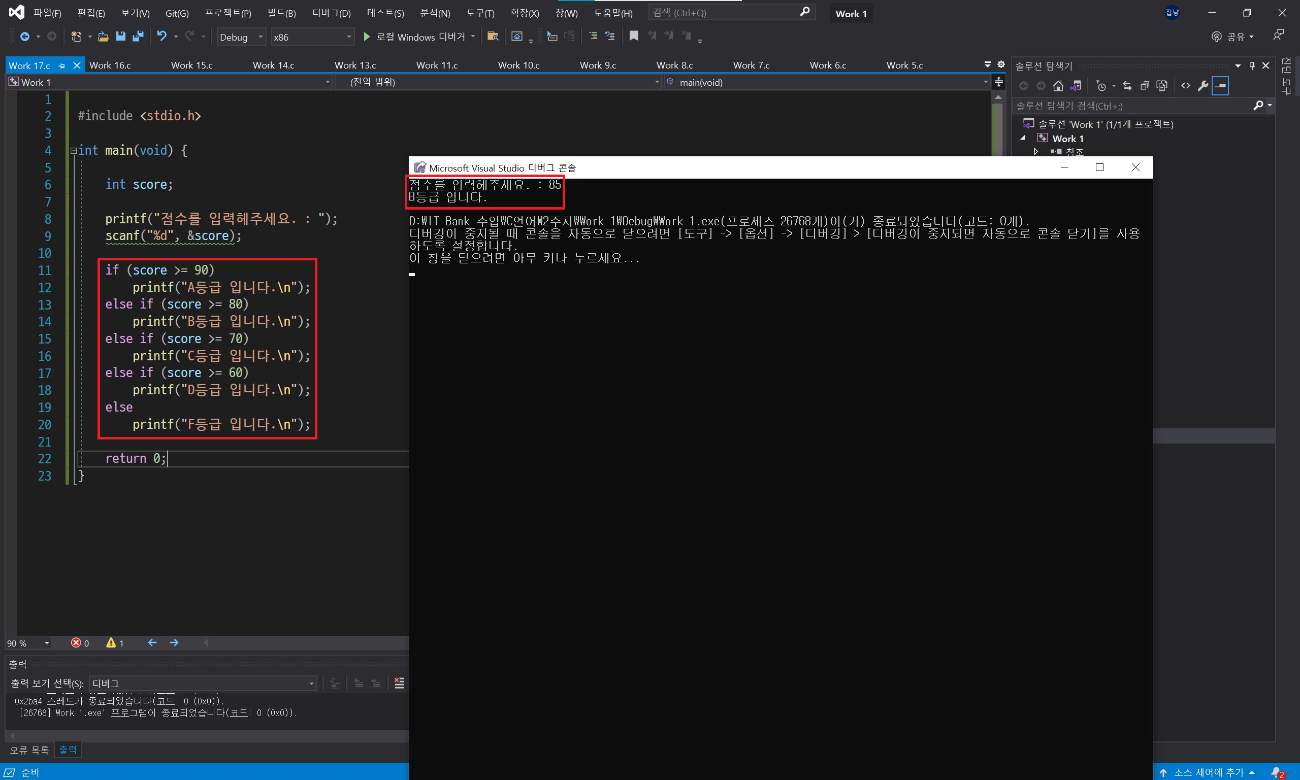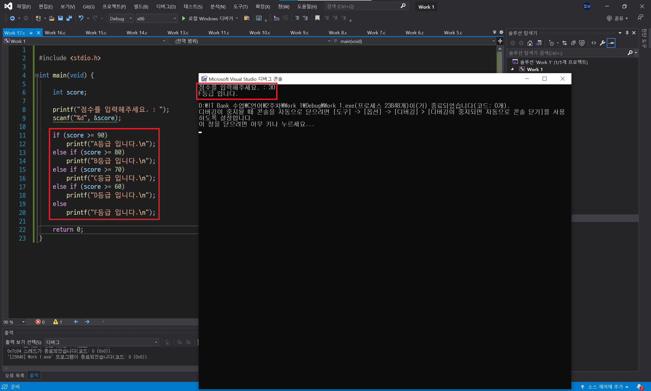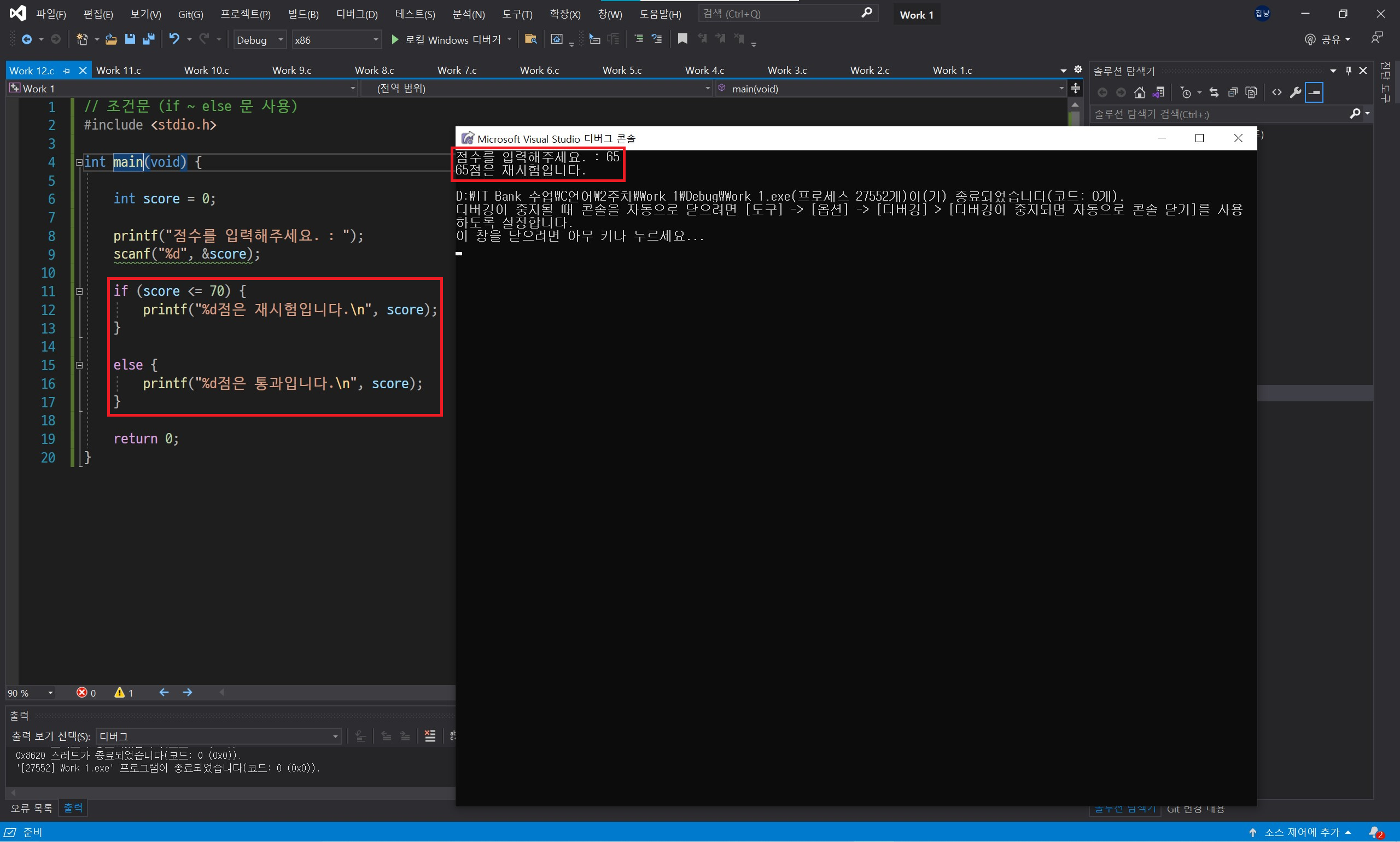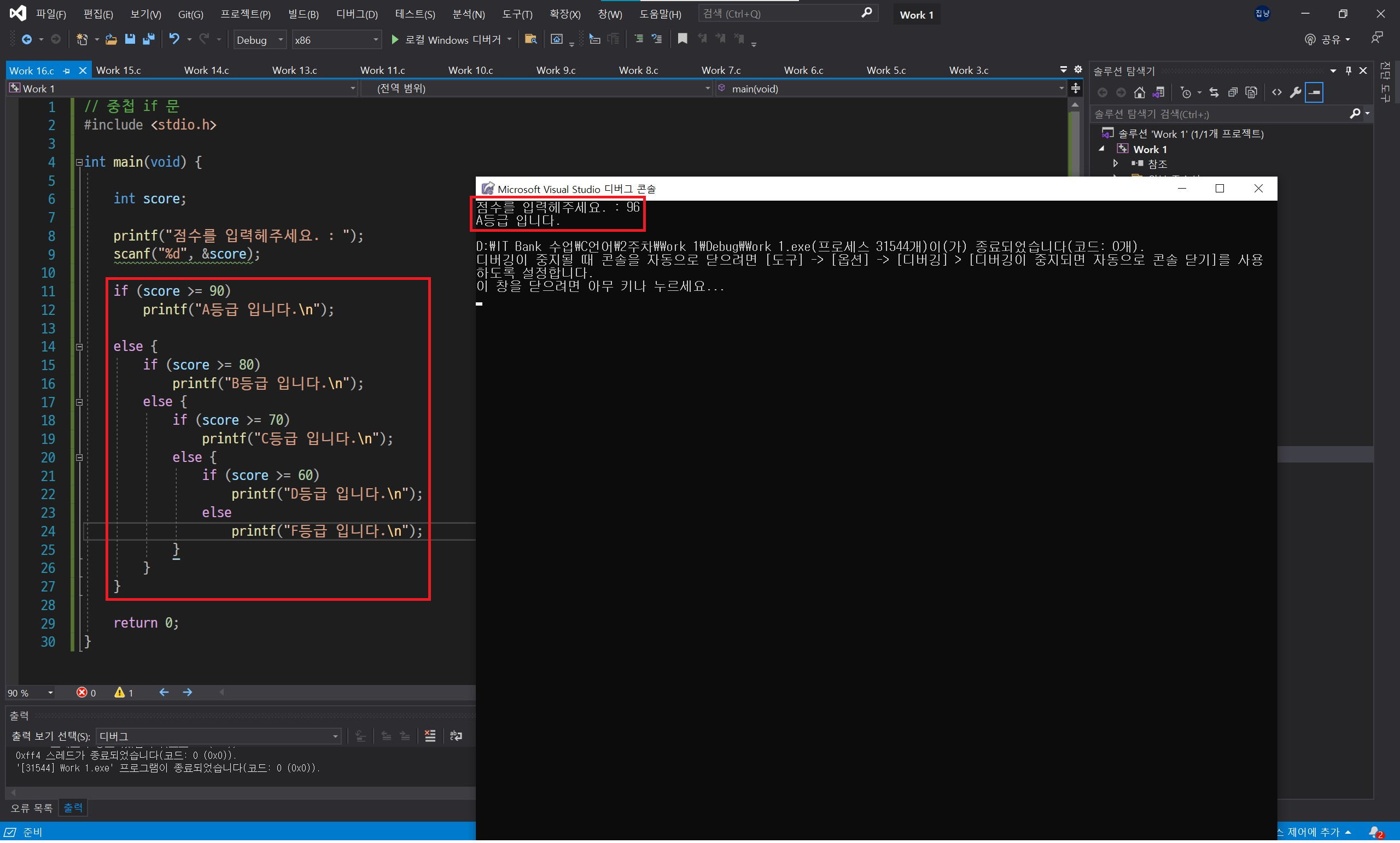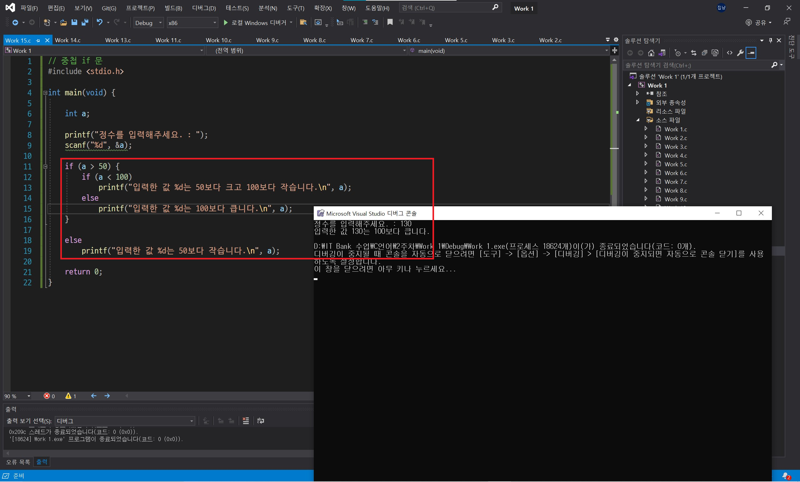 중첩 if 문을 사용하기보다 else if 문을 사용하는 것이 보기에도 편리하고 좋습니다.