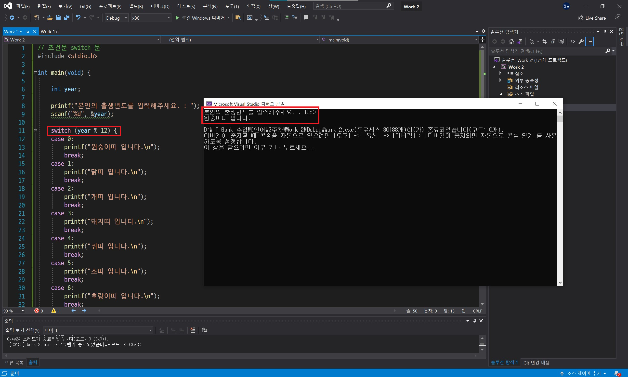 두 번째 조건문은 switch 문입니다. switch 문은 if 문과 의미는 동일하지만 사용하는 방식이 다릅니다.