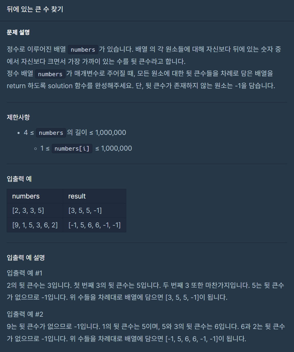 - 정답 리스트를 모두 -1로 초기화한다. answer = [-1] * len(numbers)