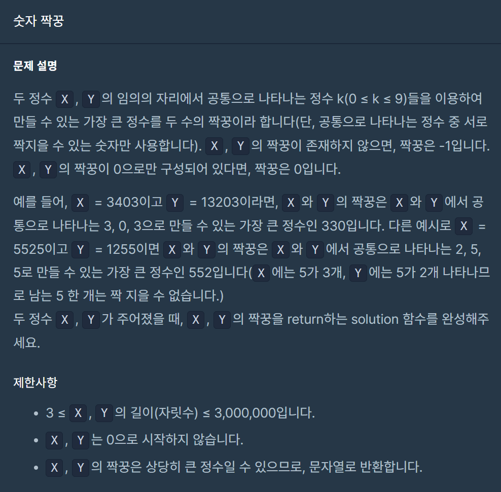 [프로그래머스] 숫자 짝꿍 - 파이썬(Python) - 우당탕탕 개발자 되기 프로젝트