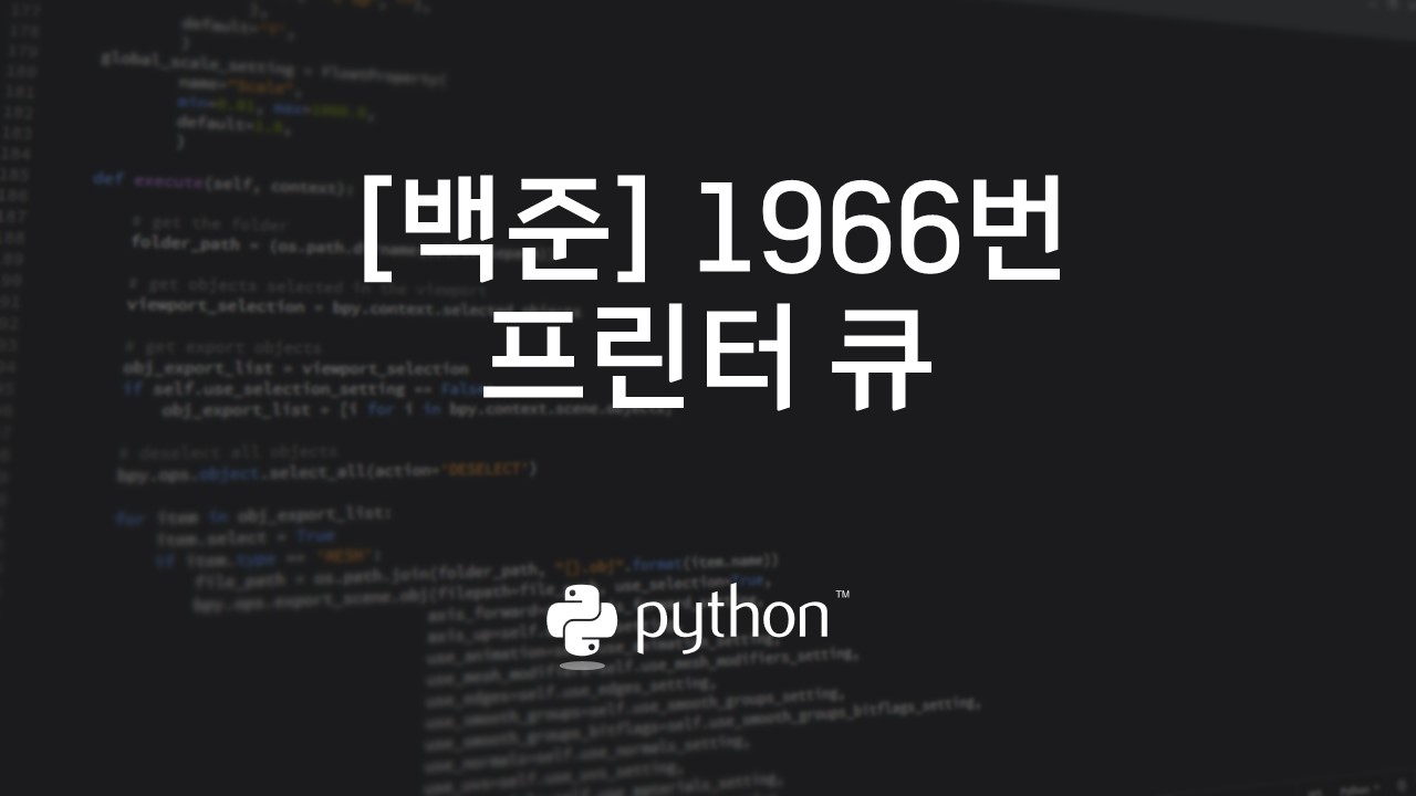 - 문서의 중요도를 리스트로 입력받고 deque 자료구조로 저장한다. queue = deque(list(map(int, sys.stdin.readline().split())))