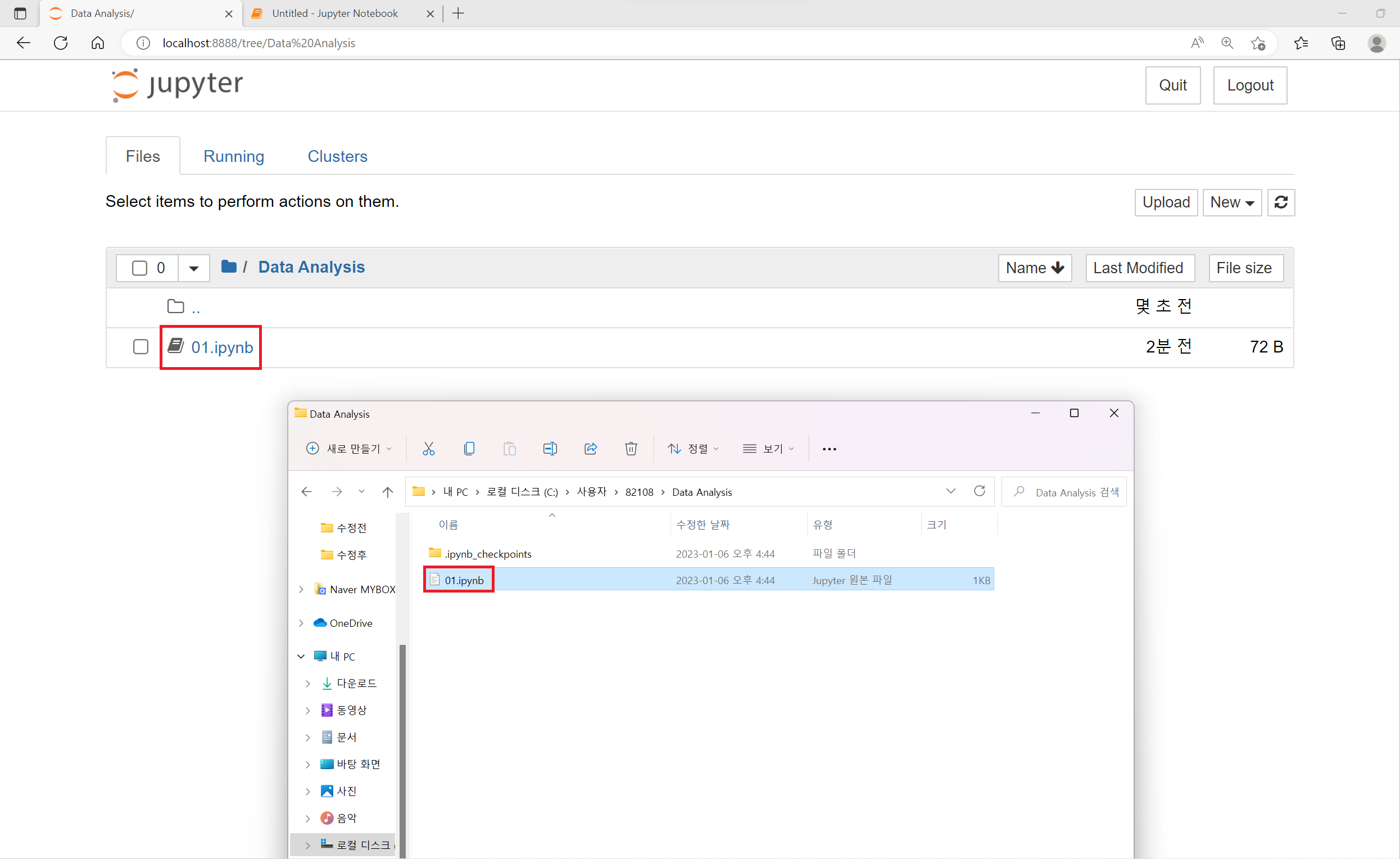 그러면 Jupyter Notebook에도 폴더가 생깁니다.