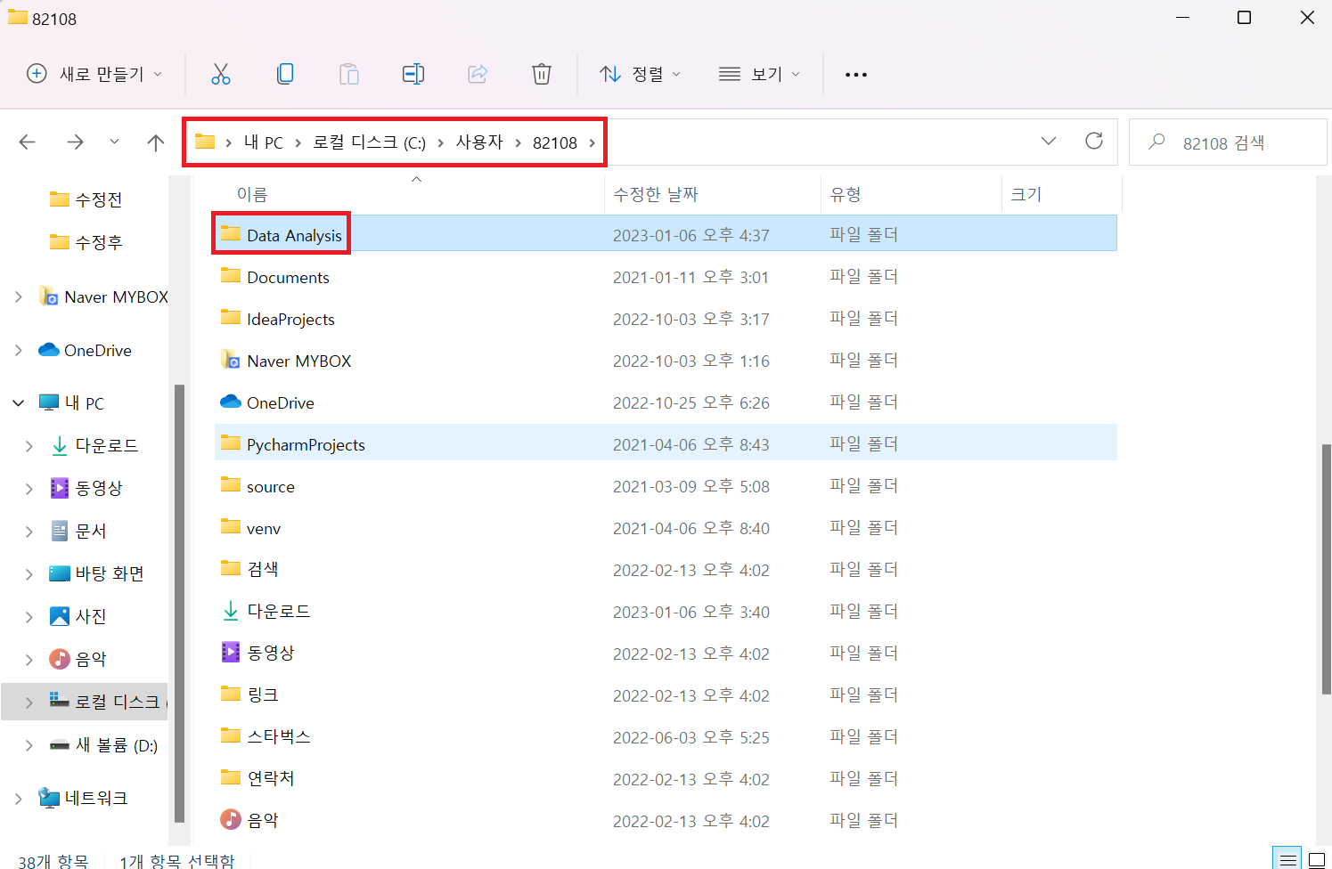 해당 경로에 들어가 데이터를 분석할 프로젝트들을 모아둘 폴더를 만들어줍니다.