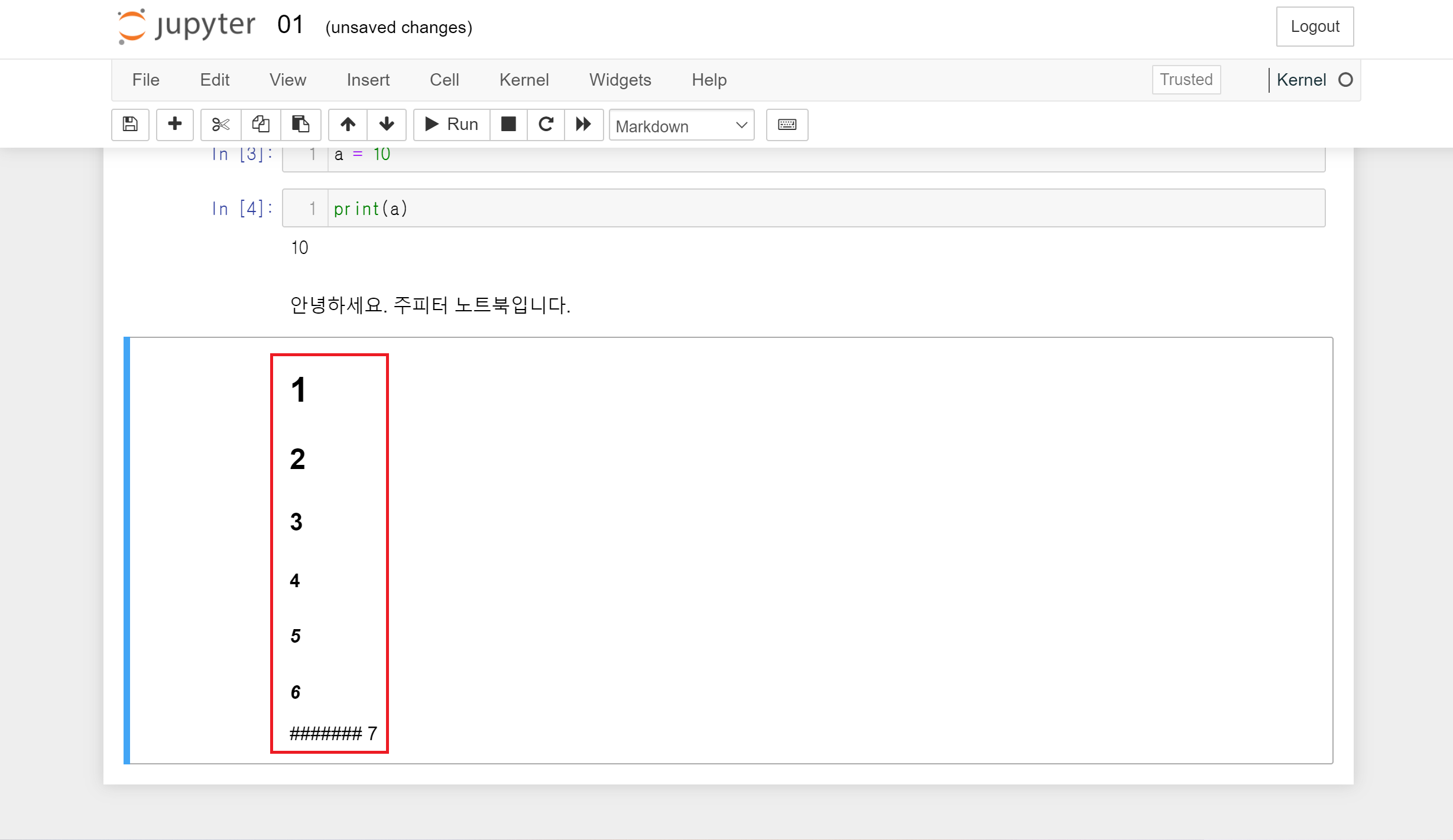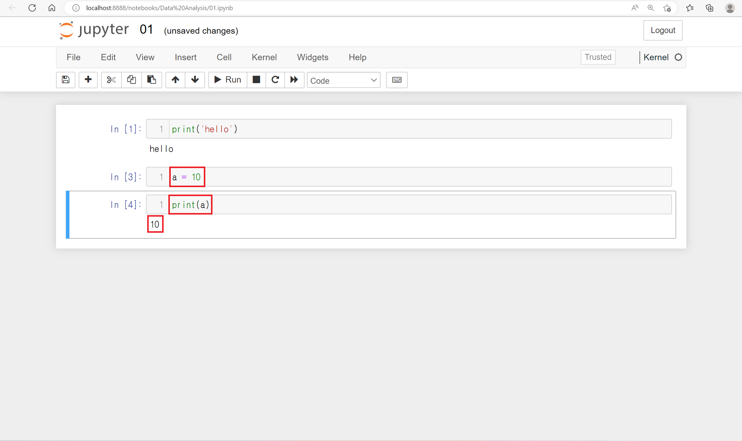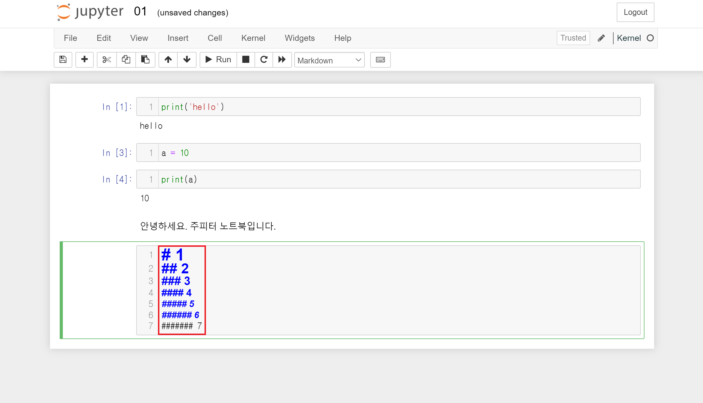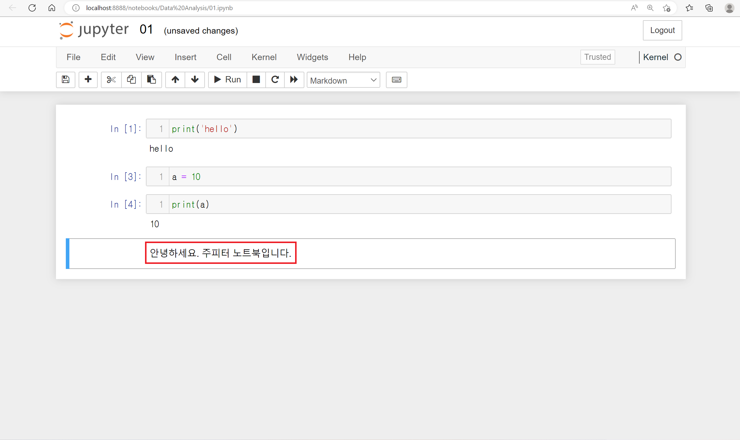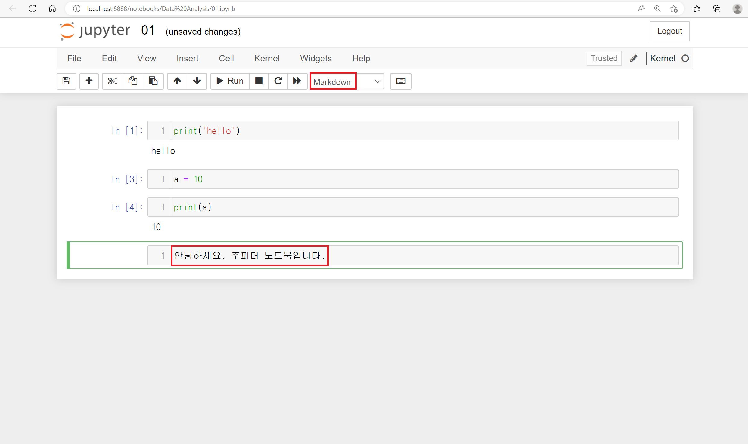 Jupyter Notebook에서는 기존 파이썬의 문법을 동일하게 사용하면 됩니다.