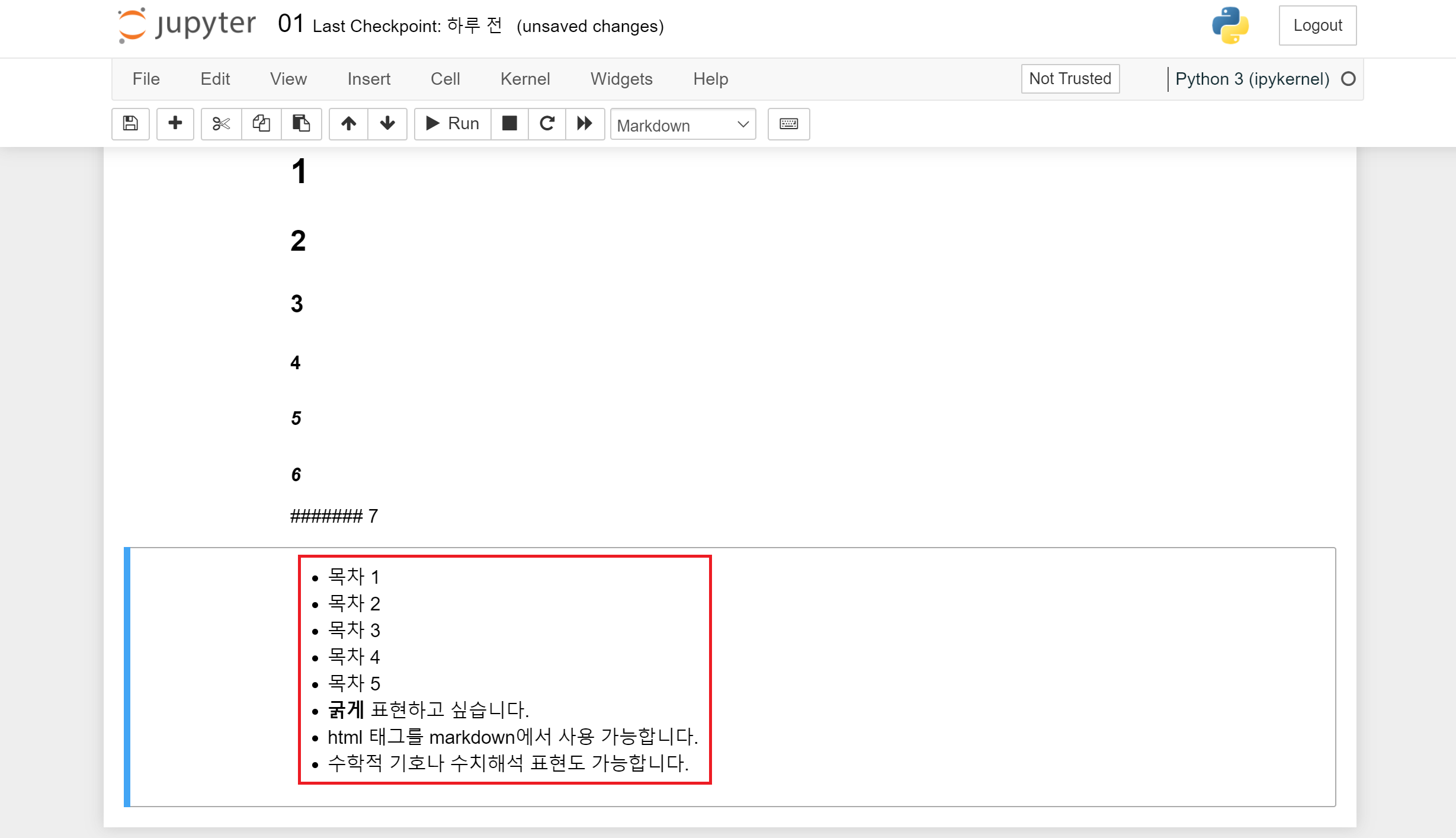 Markdown 모드에서 입력하고 실행하면 적힌 문장이 주석처럼 그래도 출력되어 나타나게 됩니다.