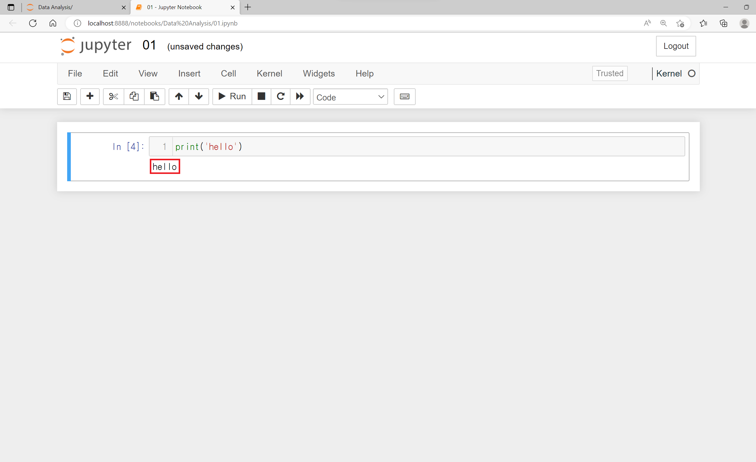 Jupyter Notebook에서는 기존 파이썬의 문법을 동일하게 사용하면 됩니다.