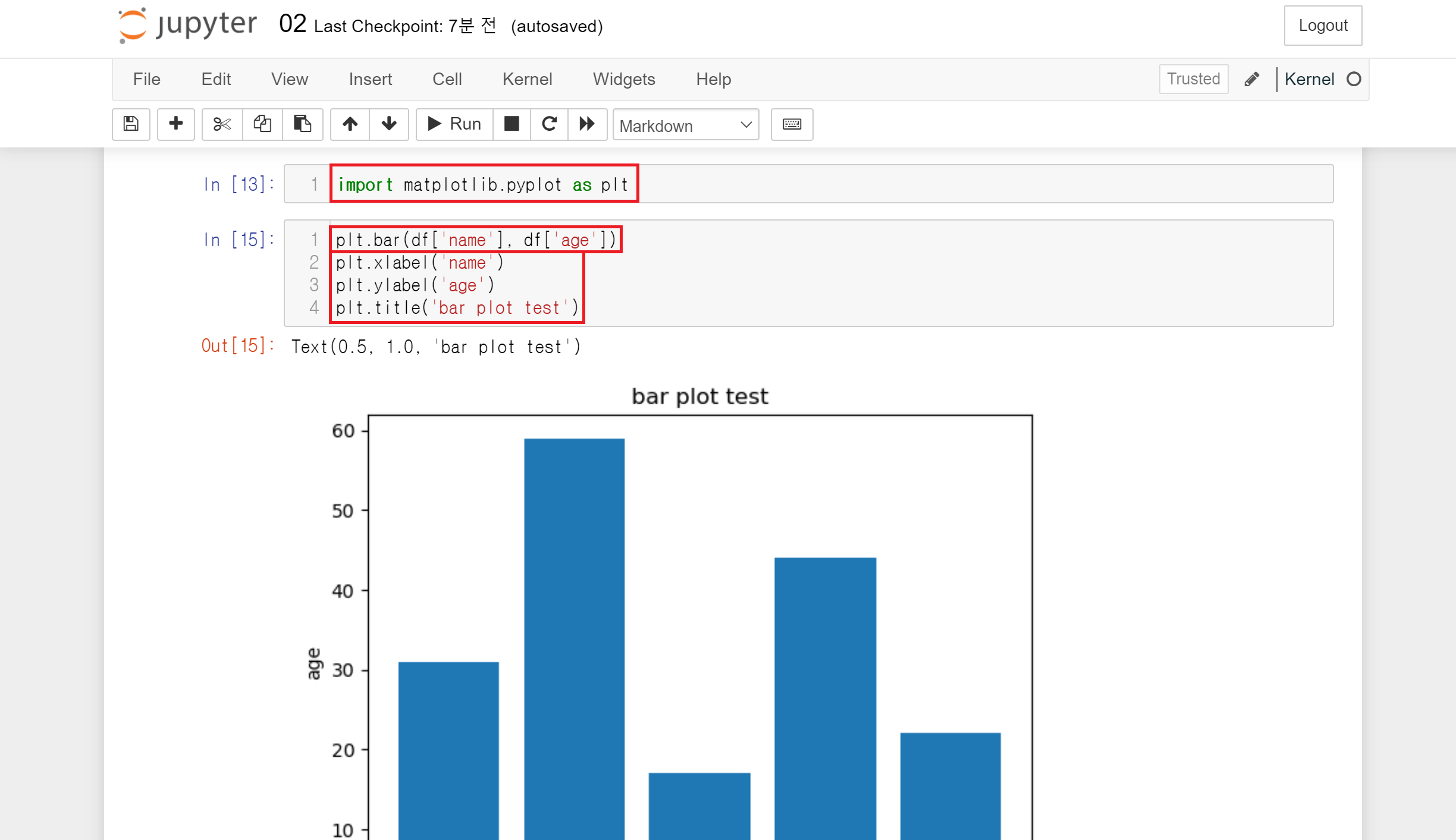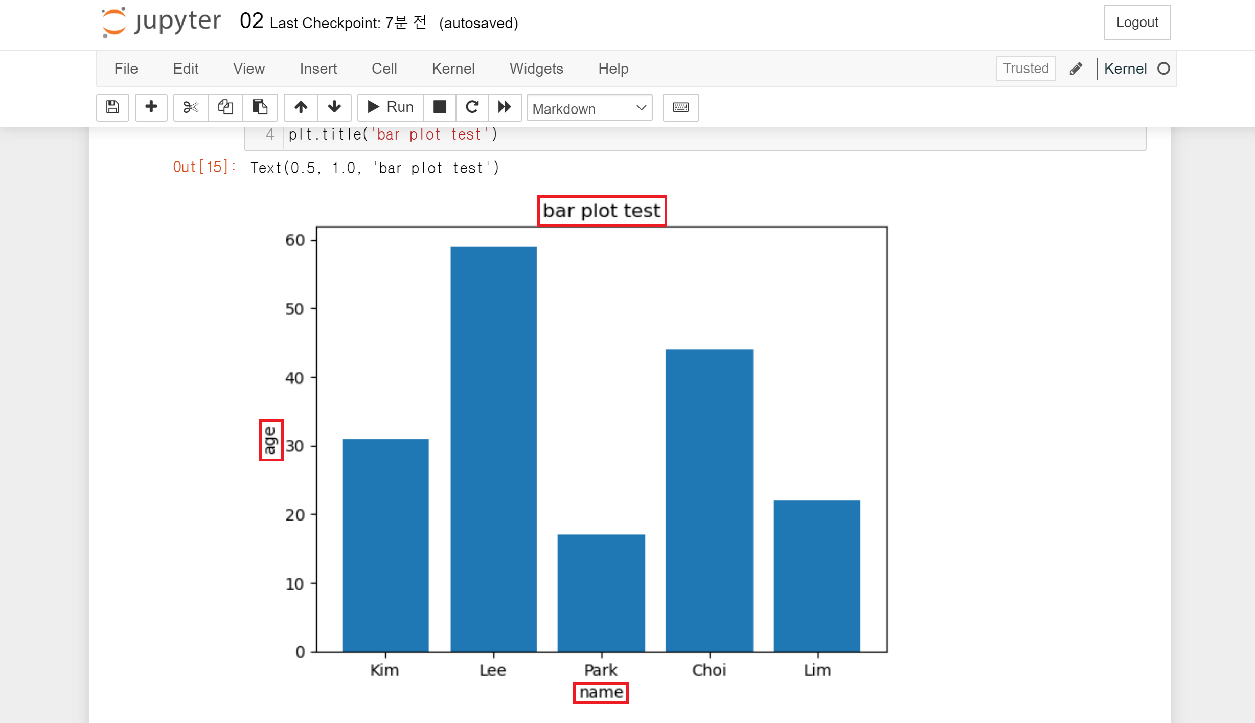그래프는 각각 레이블, 제목, 크기 조정, 색 조정 등 다양한 추가 기능이 있는데 이러한 부분은 데이터 분석에 있어서 크게 중요한 부분이 아니므로 상황에 따라 적절하게 구글링 하여 사용하면 됩니다.