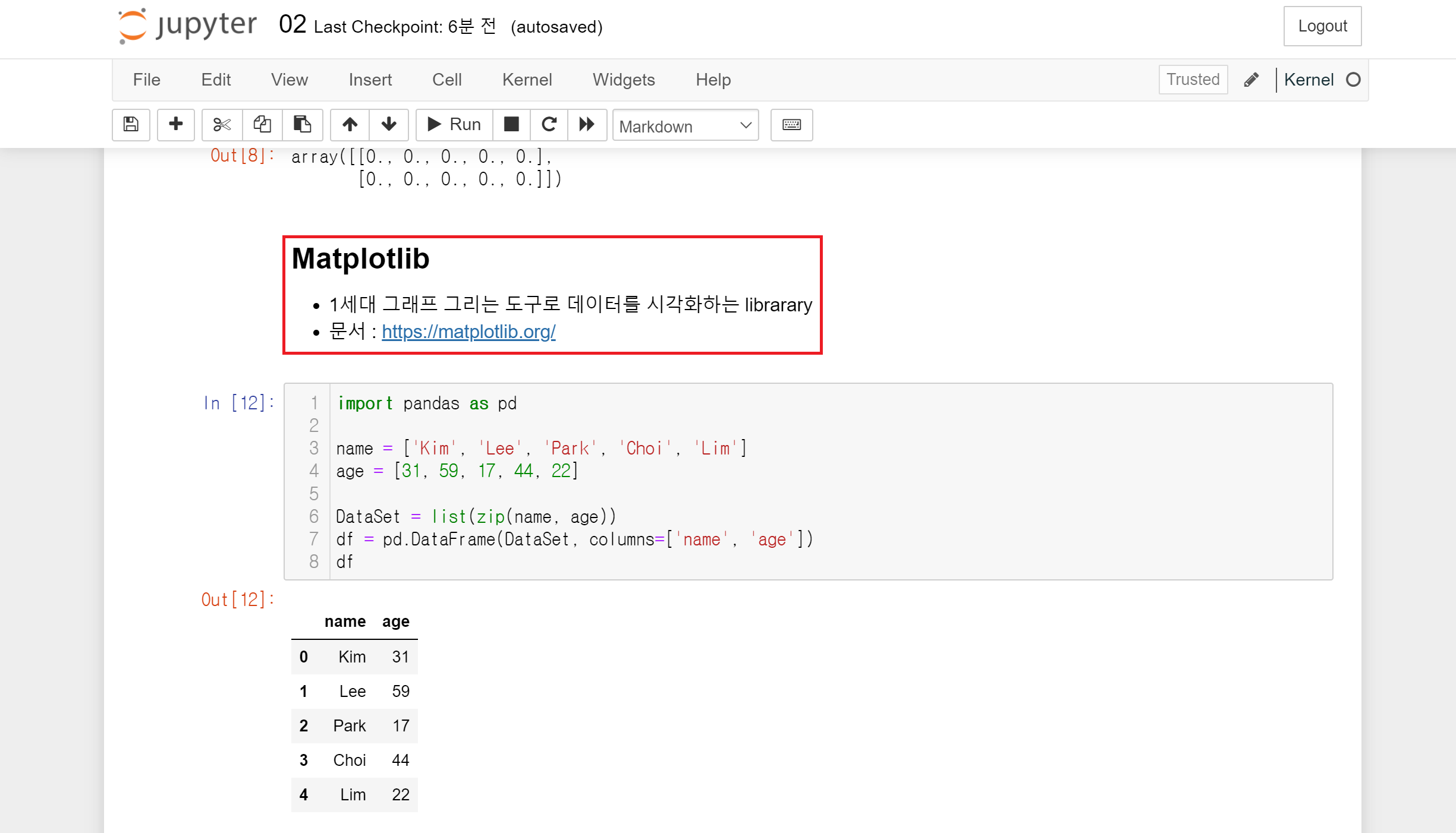 Matplotlib 또한 라이브러리 설치를 해주고 import 해줘야 사용 가능합니다.