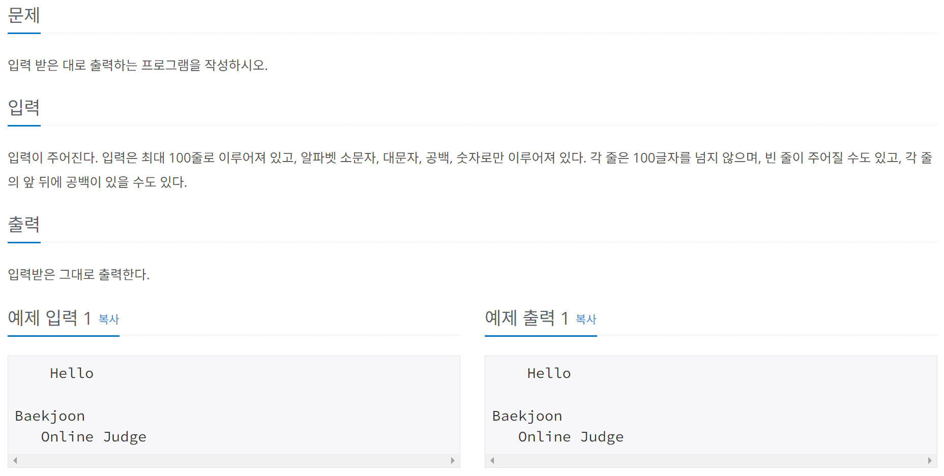 하지만 이 문제는 입력받은 그대로를 계속 출력해야 하므로 한 줄만이 아니라 전체를 입력받아야 합니다.