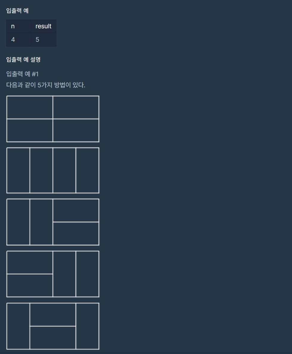 다음 n이 2일 때는 2가지, 3일 때는 3가지, 4일 때는 5가지로 증가한다.