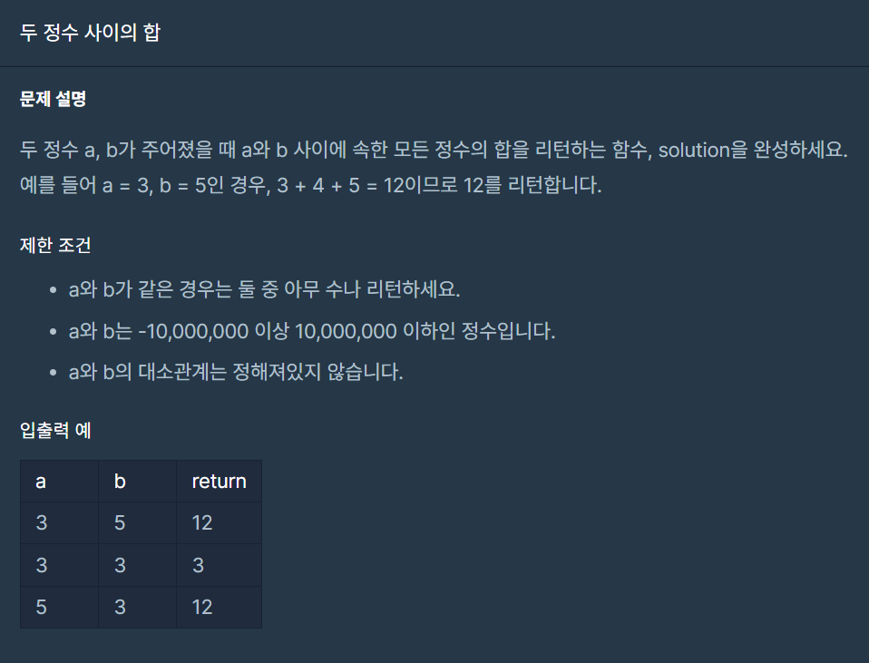 - b와 a 사이에 속한 모든 정수의 합을 구한다. for i in range(b, a + 1): answer += i