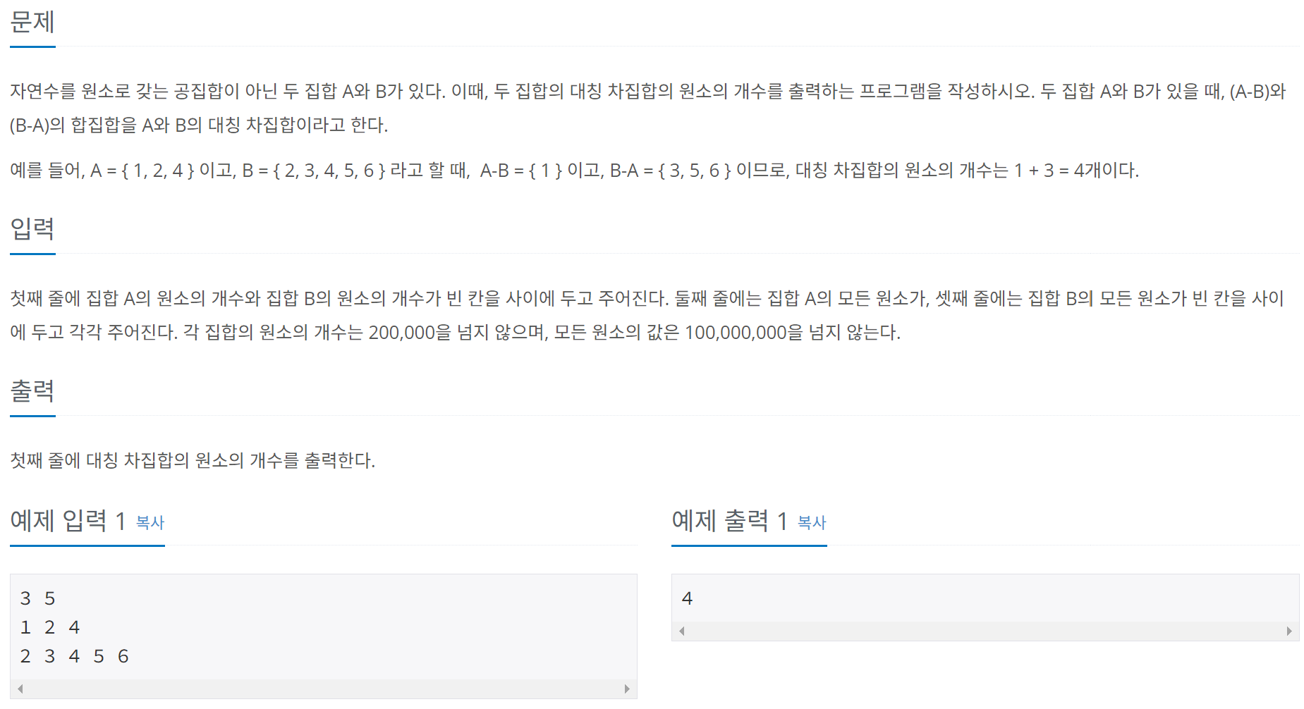 1269번: 대칭 차집합
