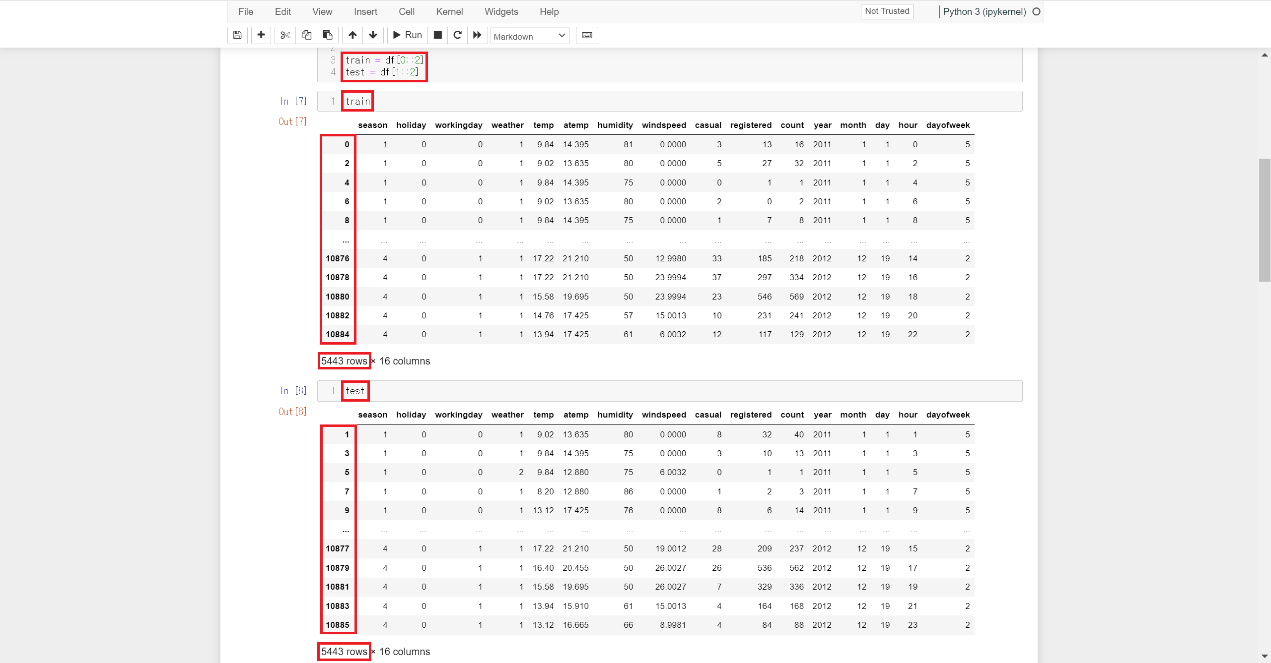해당 데이터에서는 간단하고 중복이 없는 짝수번째 데이터와 홀수번째 데이터로 분리하였습니다.