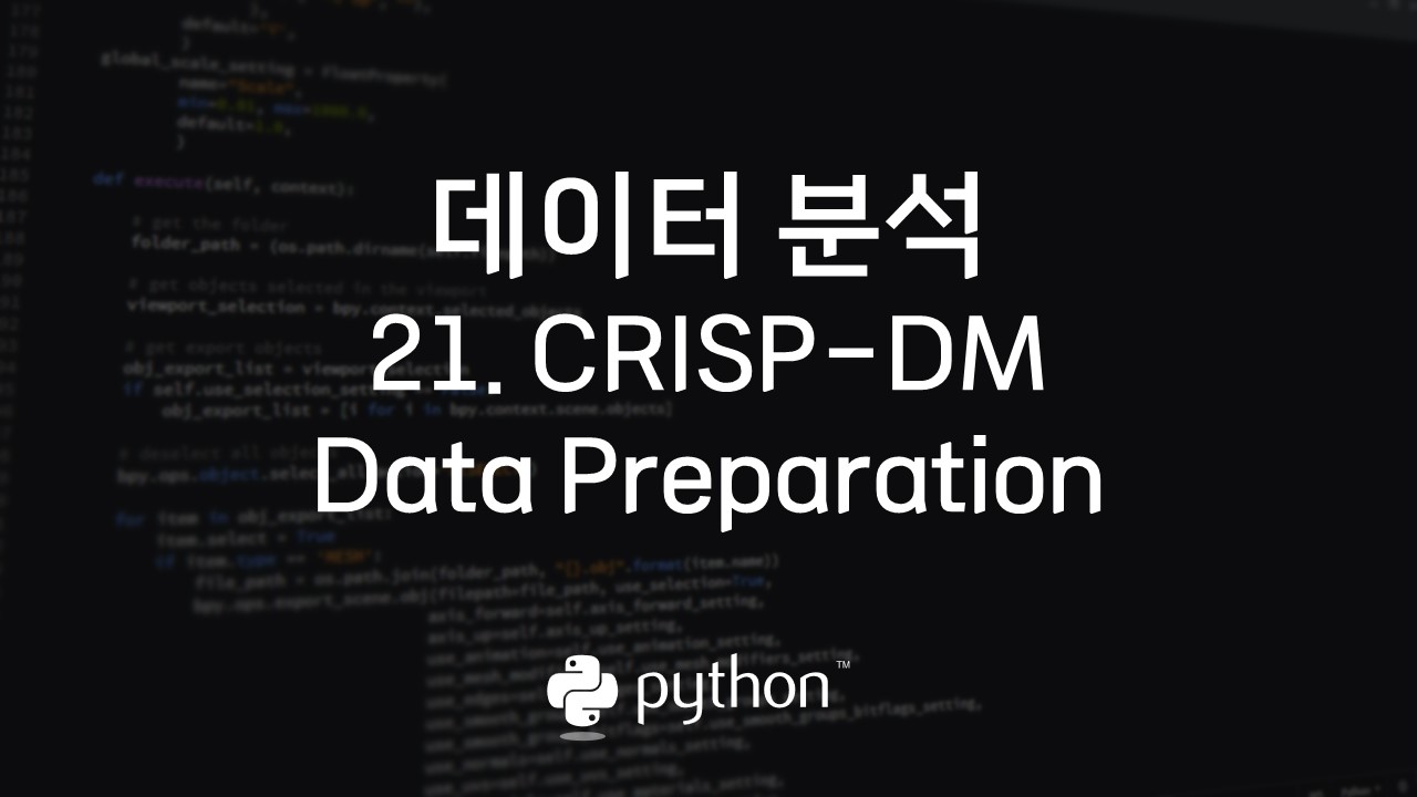 CRISP-DM 방법론의 세 번째 단계인 Data Preparation 단계는 분석을 위해 수집된 데이터에서 분석 기법에 적합한 데이터를 편성하는 단계입니다.
