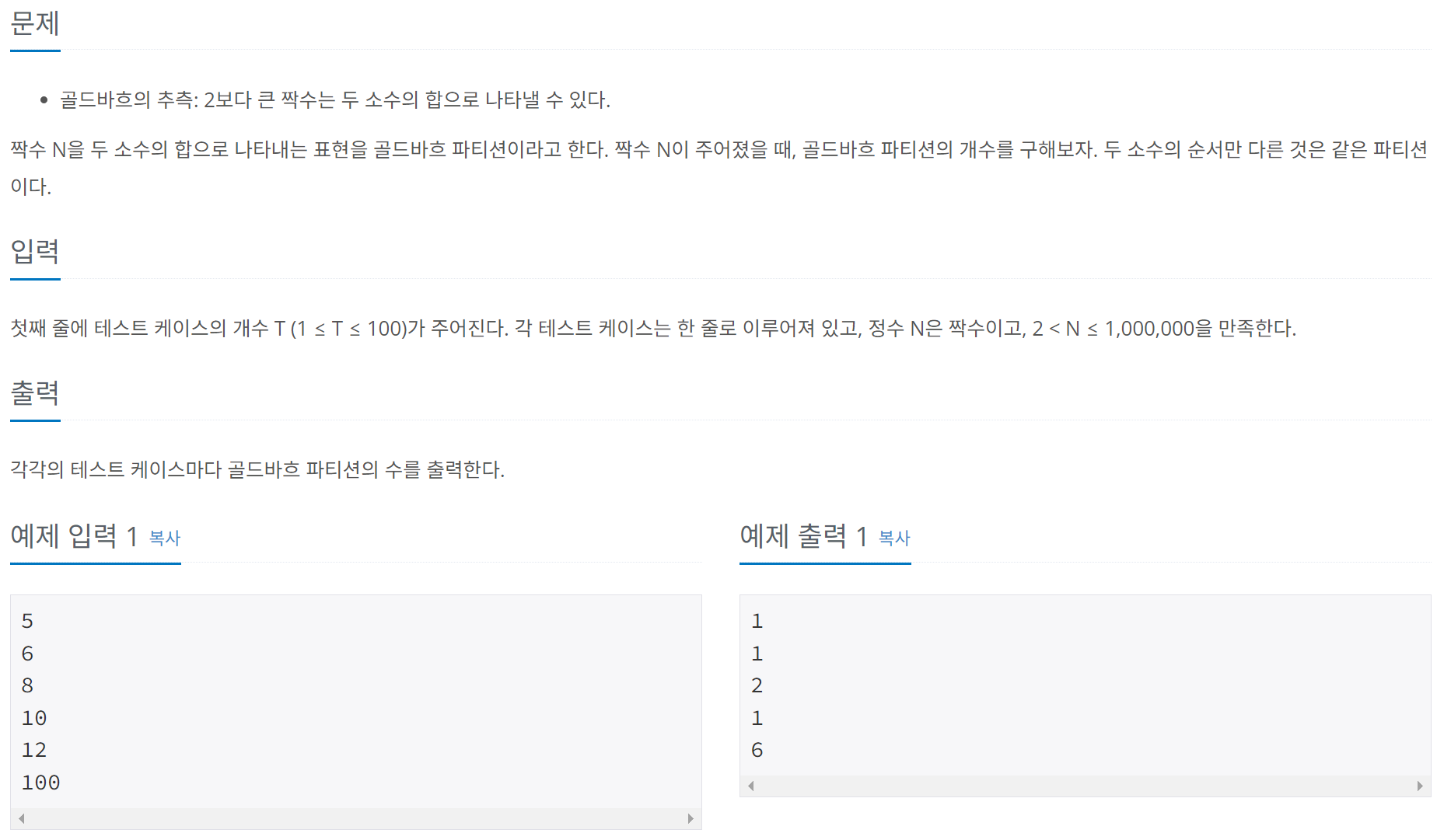 해당 문제는 수의 골드바흐 파티션 개수를 구하는 문제이다.