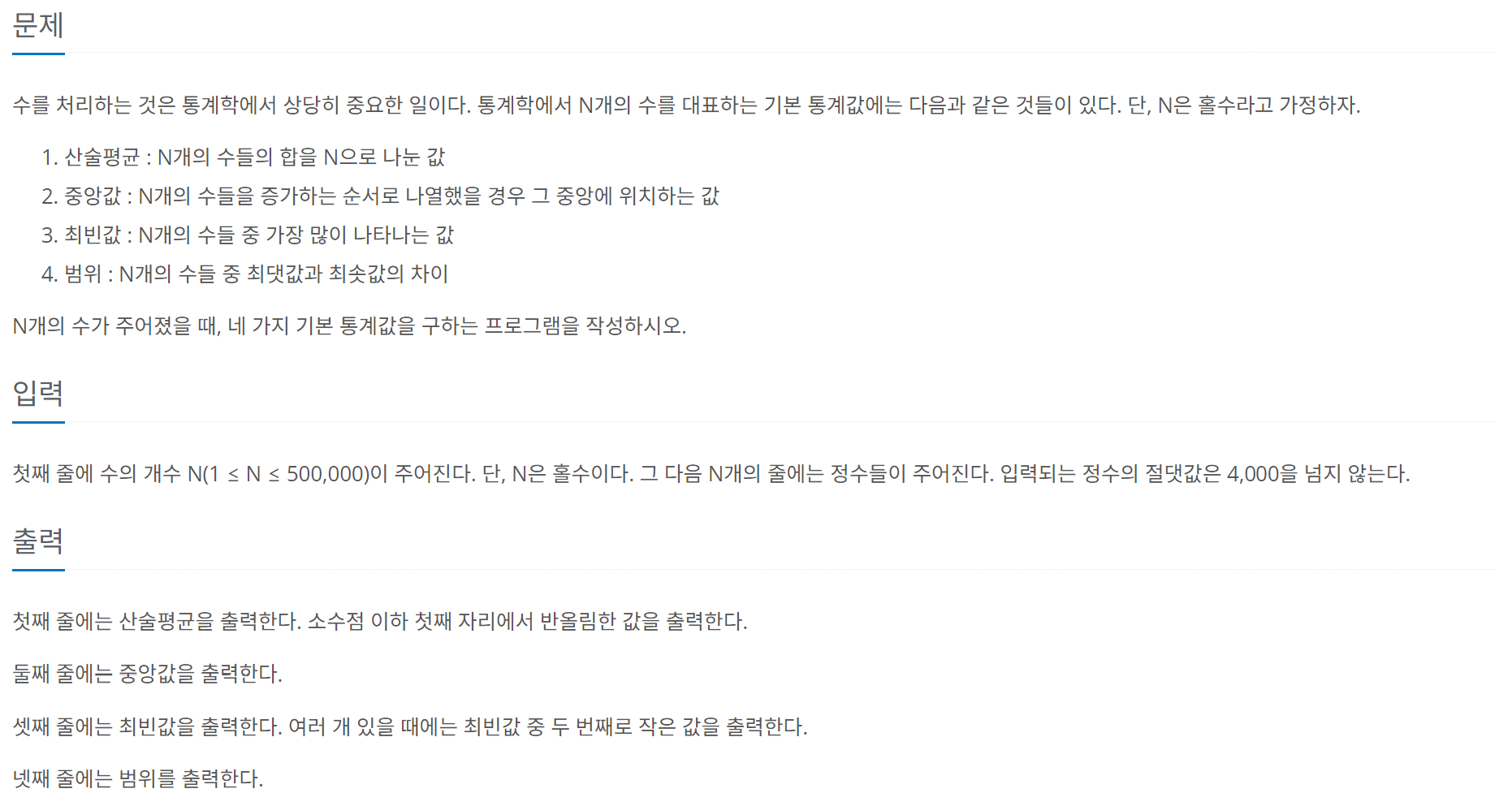 2108번: 통계학