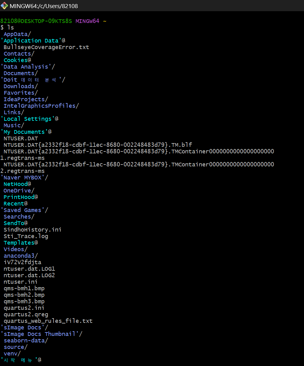 ls -a : 숨긴 파일이나 디렉터리도 함께 표시