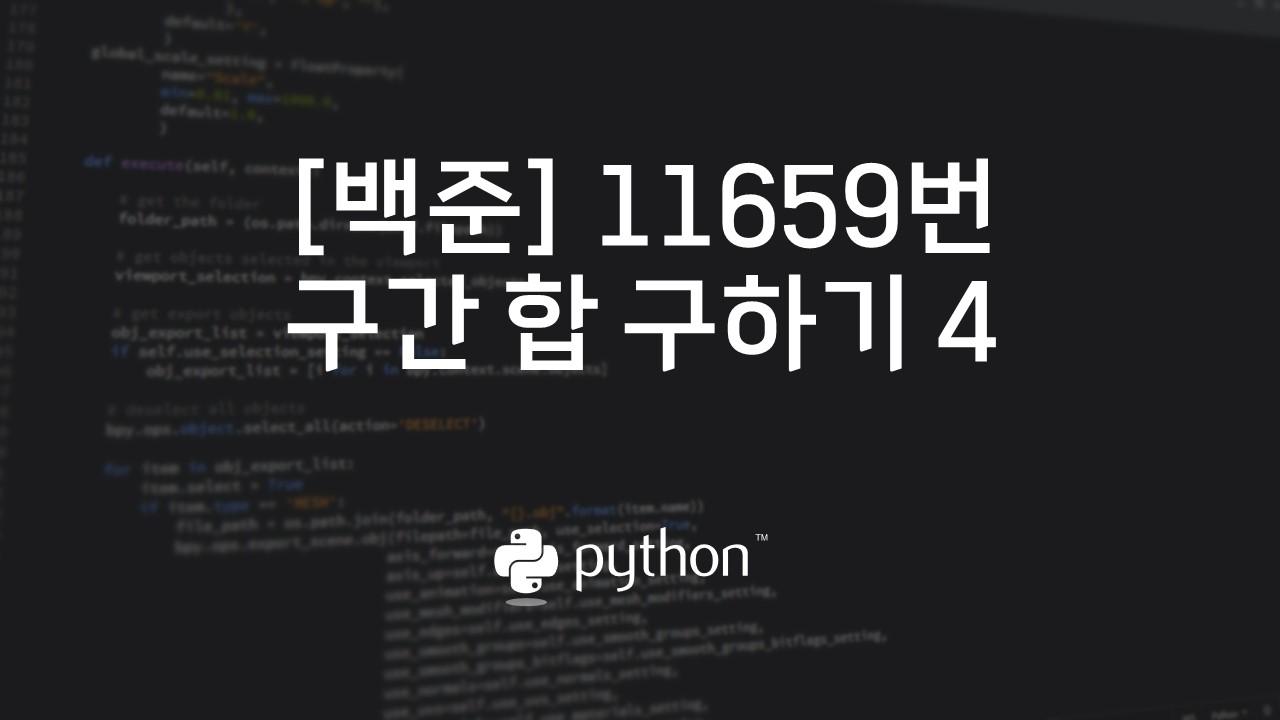 | [백준] 11660번 : 구간 합 구하기 5 - 파이썬(Python) - 우당탕탕 개발자 되기 프로젝트 (0) | 2024.01.04 |