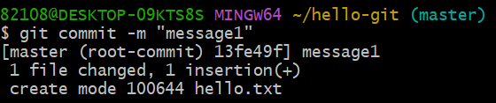 git commit -m "message1" 명령으로 파일을 커밋한다.
