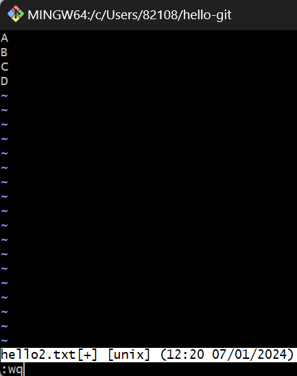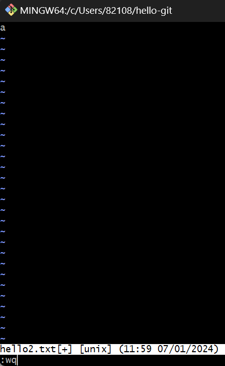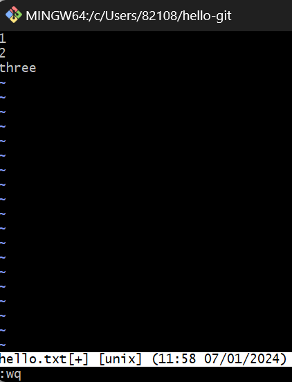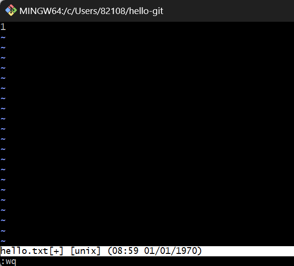 1을 입력하고 Esc를 눌러 ex 모드로 바꾼 뒤, :wq를 입력해 문서를 저장하고 빔 편집기를 종료한다.
