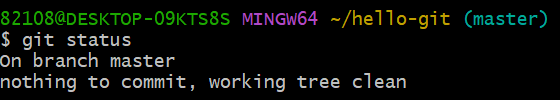 해당 메시지가 나타나면 이제부터 hello-git에서 깃을 사용할 수 있다.