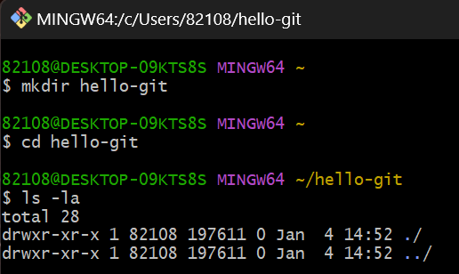 ls -la 명령으로 다시 한번 디렉터리 안의 내용을 확인해 보면 .git이라는 디렉터리가 생긴 것을 확인할 수 있다.