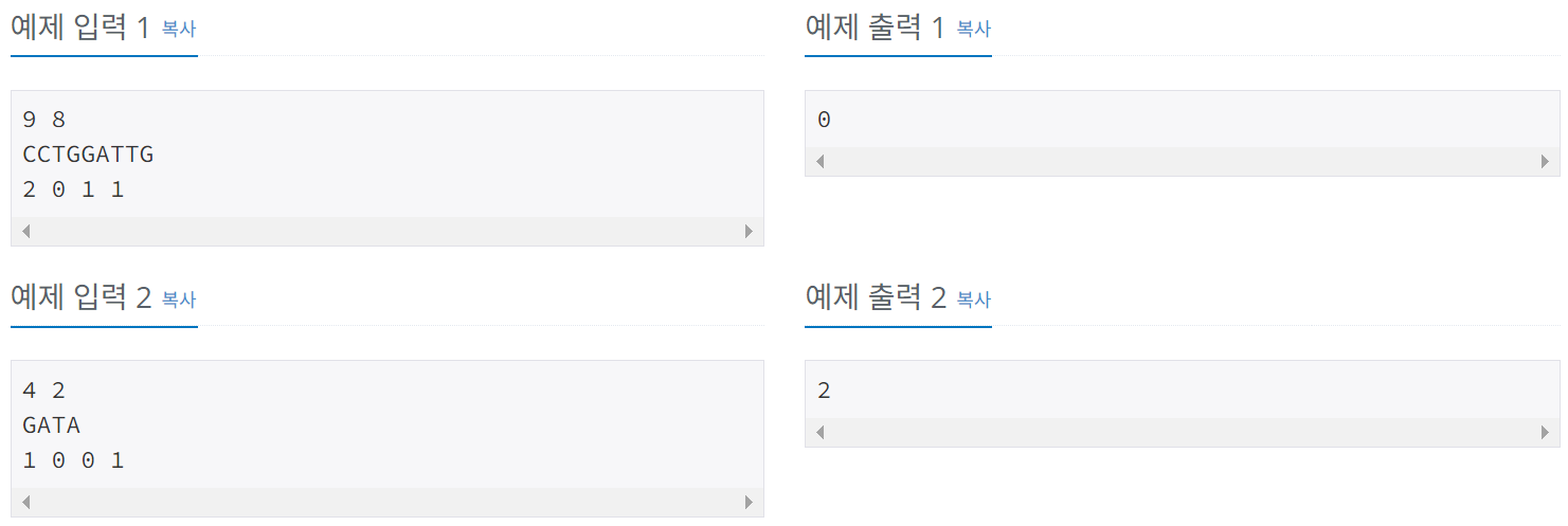12891번: DNA 비밀번호