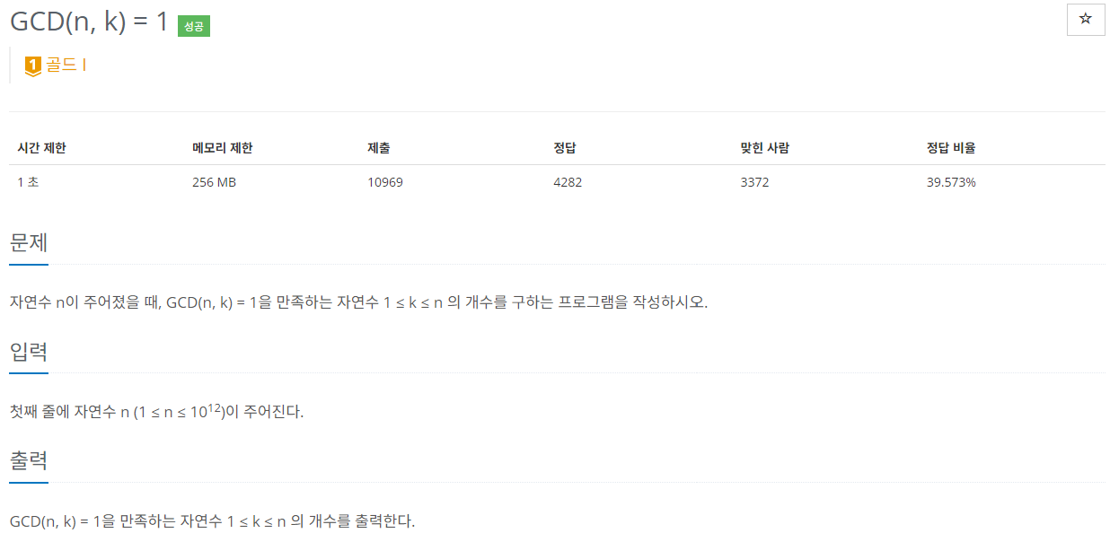 해당 문제는 오일러 피 함수를 잘 구현할 수 있는지 물어보는 문제라고 할 수 있다.